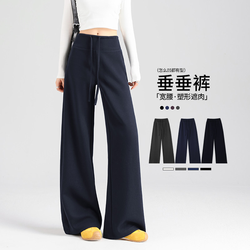 American sweatpants women's 2025 new autumn and winter high-waisted slimming fleece thickened wide-leg casual straight-leg corsets