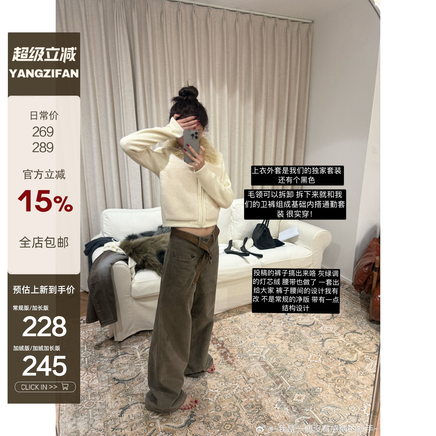 yangzifan 100 cotton corduroy pants women's autumn and winter regular + fleece version double version optional slacks
