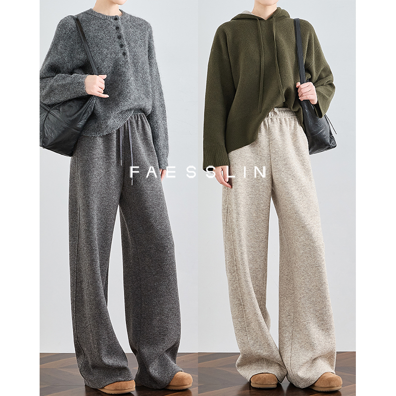 FAESSLIN [glutinous rice pants] wool wide-leg pants women's autumn and winter thickened drape gray sweatpants casual sweatpants