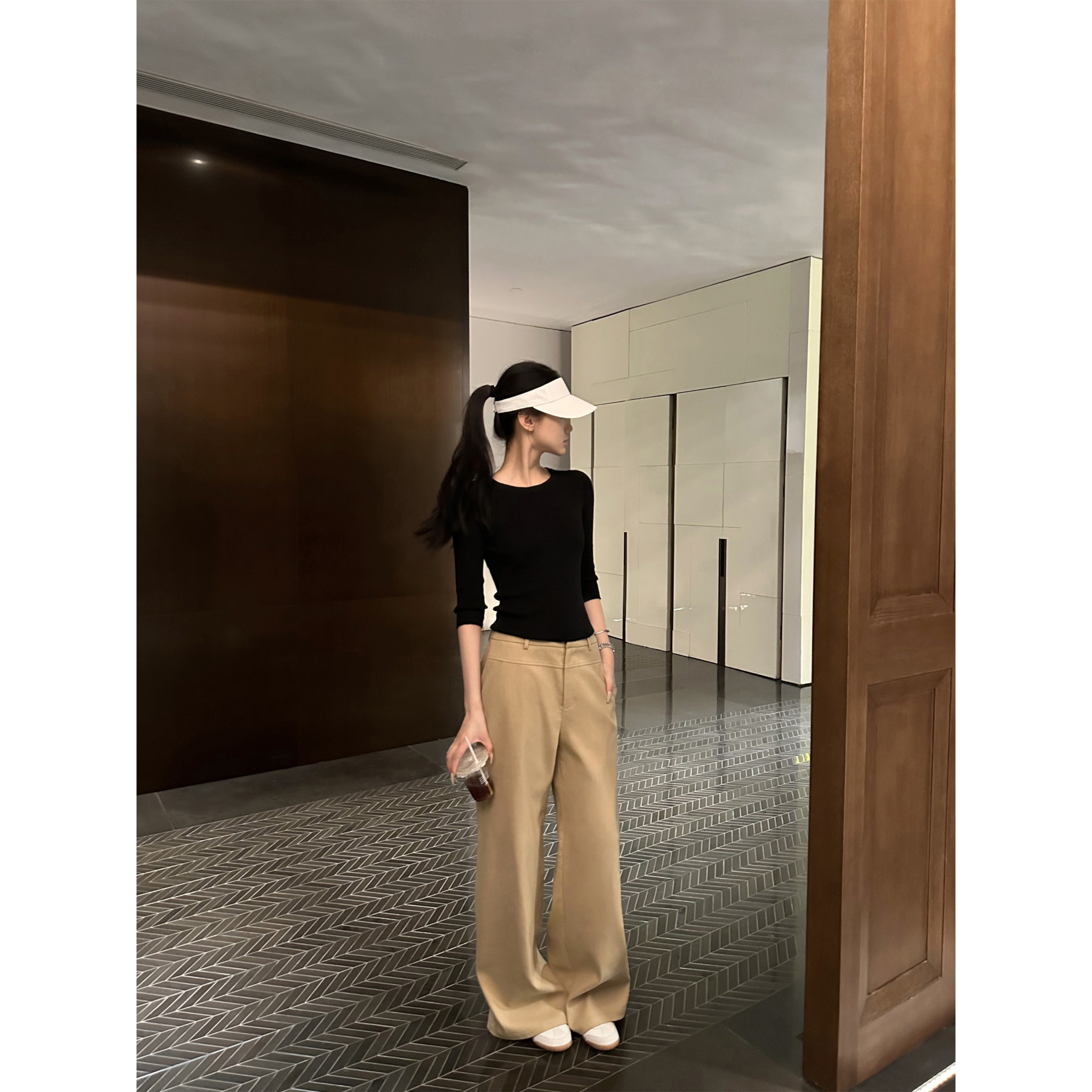 5werkwen Yuppie Old Money|Raff Aesthetics Minimalist retro khaki pants, slacks, loose straight pants, women