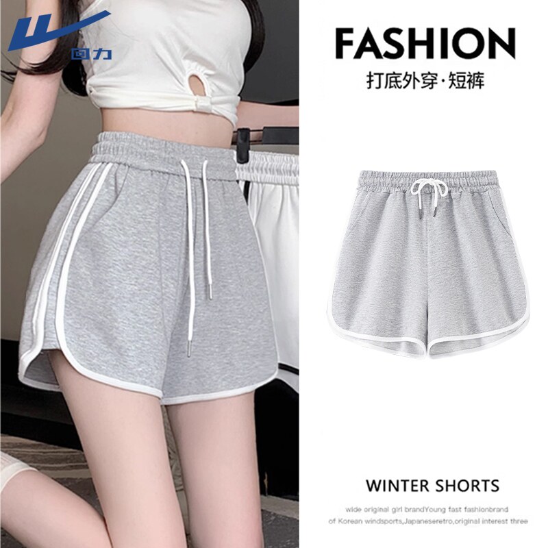 Pull-back linen gray cotton sports shorts Women's summer wear 2026 new high-waisted A-line loose casual three-point pants