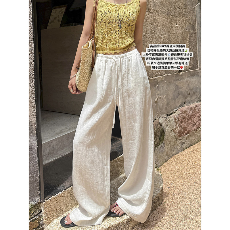 White 100 linen pants women's 2025 summer light and light loose old money straight pants breathable and casual wide-leg pants