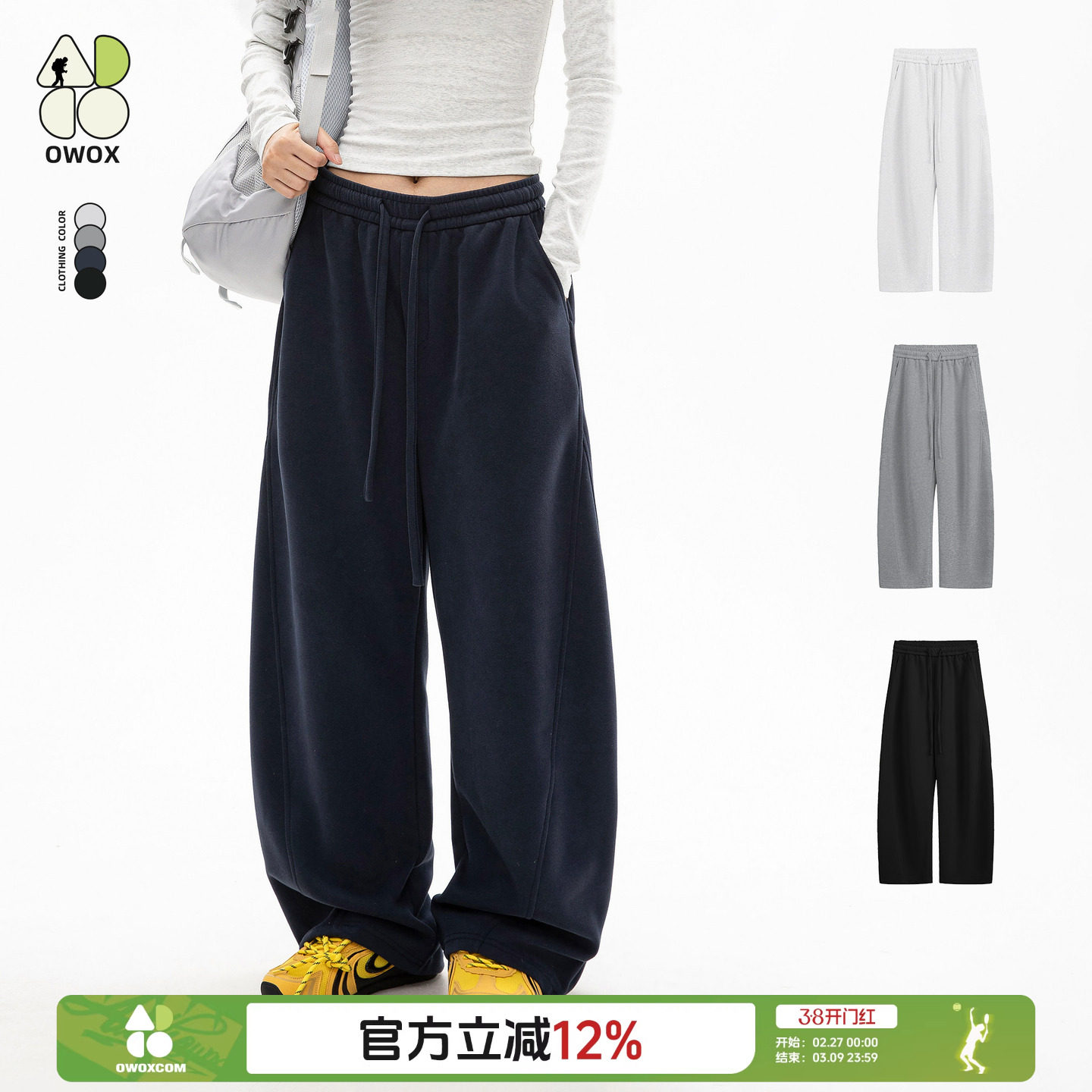 OWOX drape loose bf lazy style sports sweatpants women's autumn straight wide-leg couple scimitar casual pants