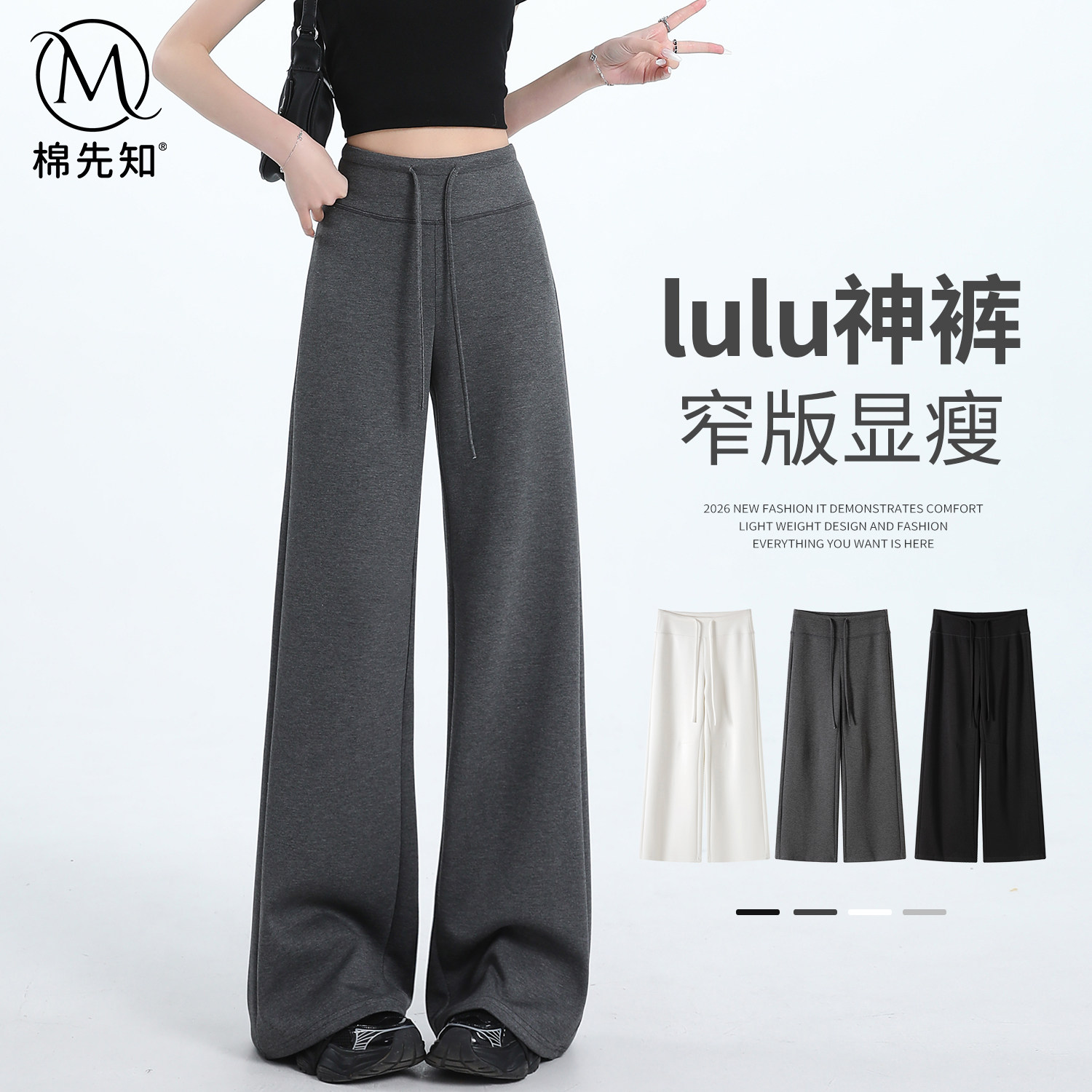 Gray pants, women's spring, autumn, summer 2026 new draped straight narrow wide-leg pants, high-waisted yoga pants, sports sweatpants
