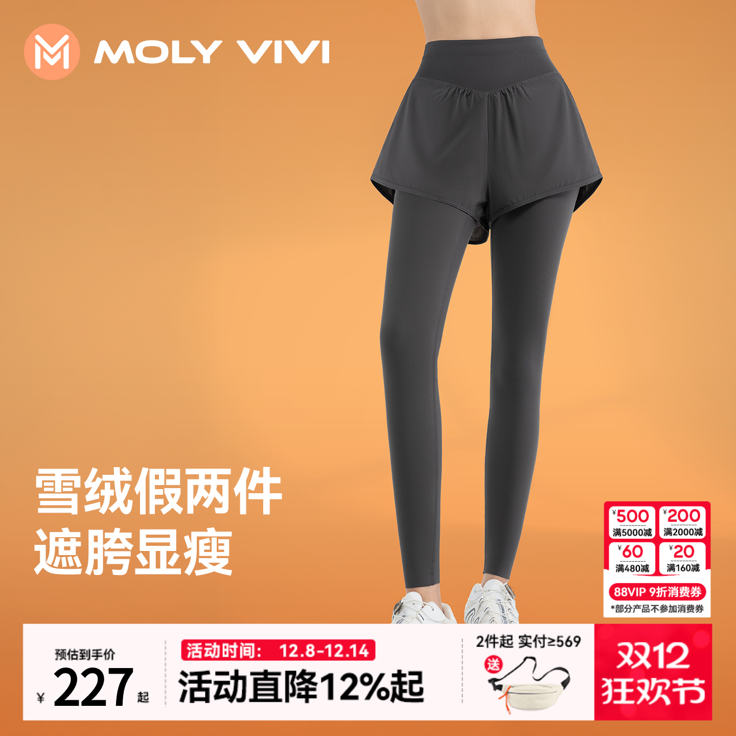 Magic Weiwei fake two pieces of shark pants women's autumn and winter new edelweiss warm covering crotch to show slimming and wearing yoga leggings