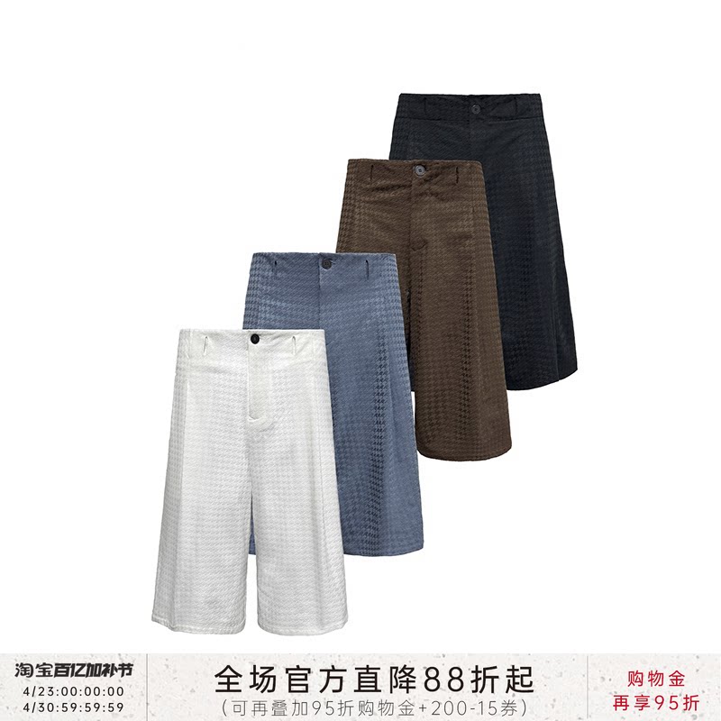 JCAESAR CAPRI PANTS Houndstooth Pleated Cropped Pants Plaid Texture Front Pleats Slightly Wide Multicolored