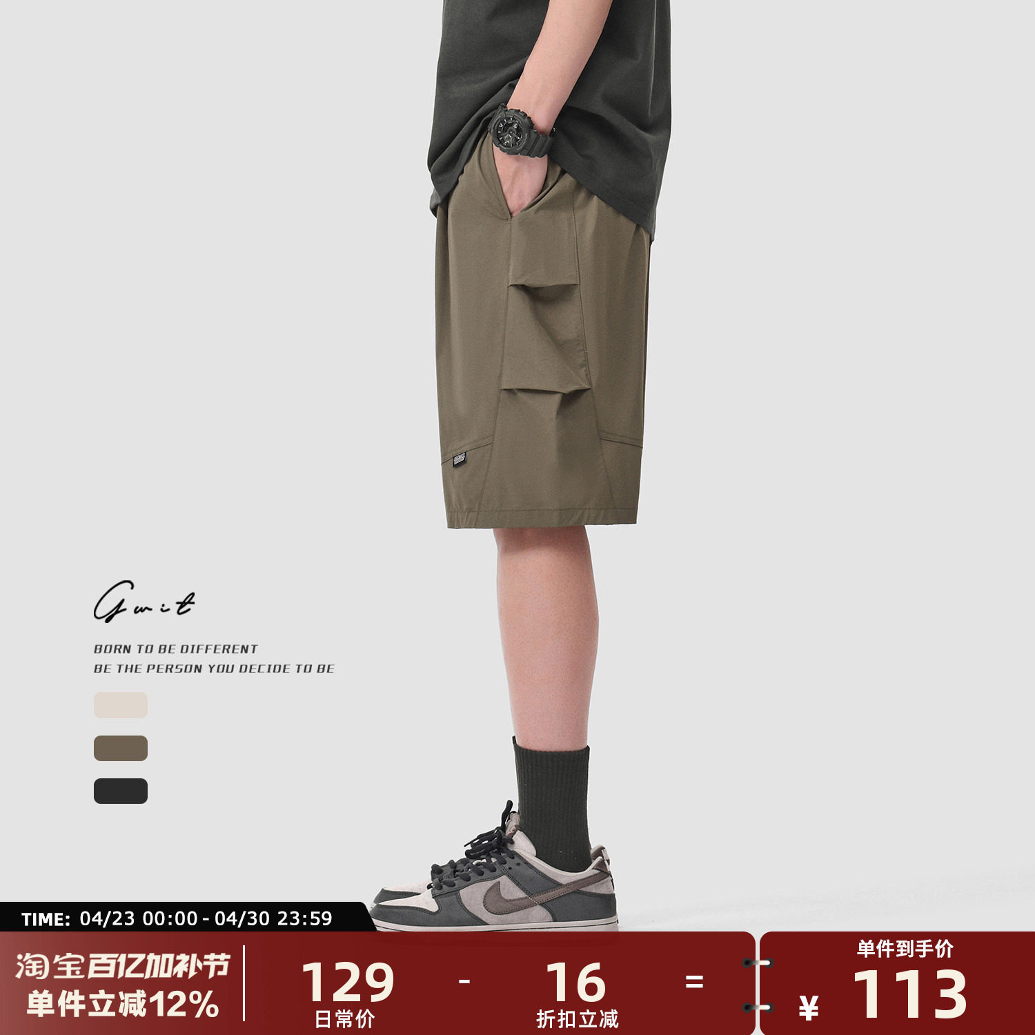 GWIT American High Street Summer Light Ice Silk Breathable Cool Casual Pants Thin Cropped Cargo Shorts Men
