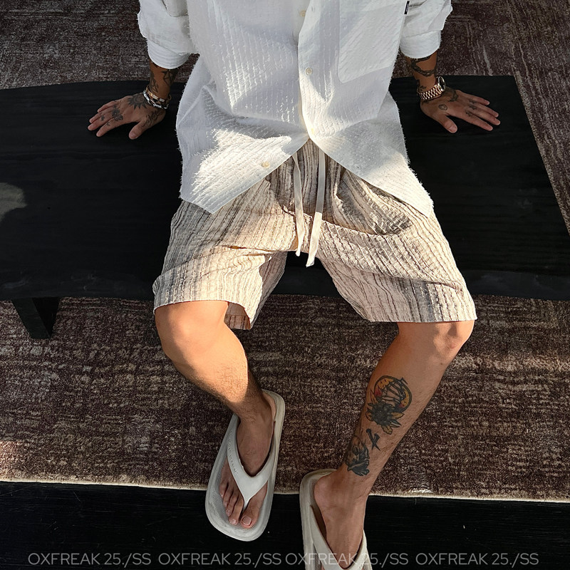 OXFREAK "Mixed Color Texture Jacquard" Old Money Style Pleated Shorts Men's Thin Loose Straight Over the Knee Pants