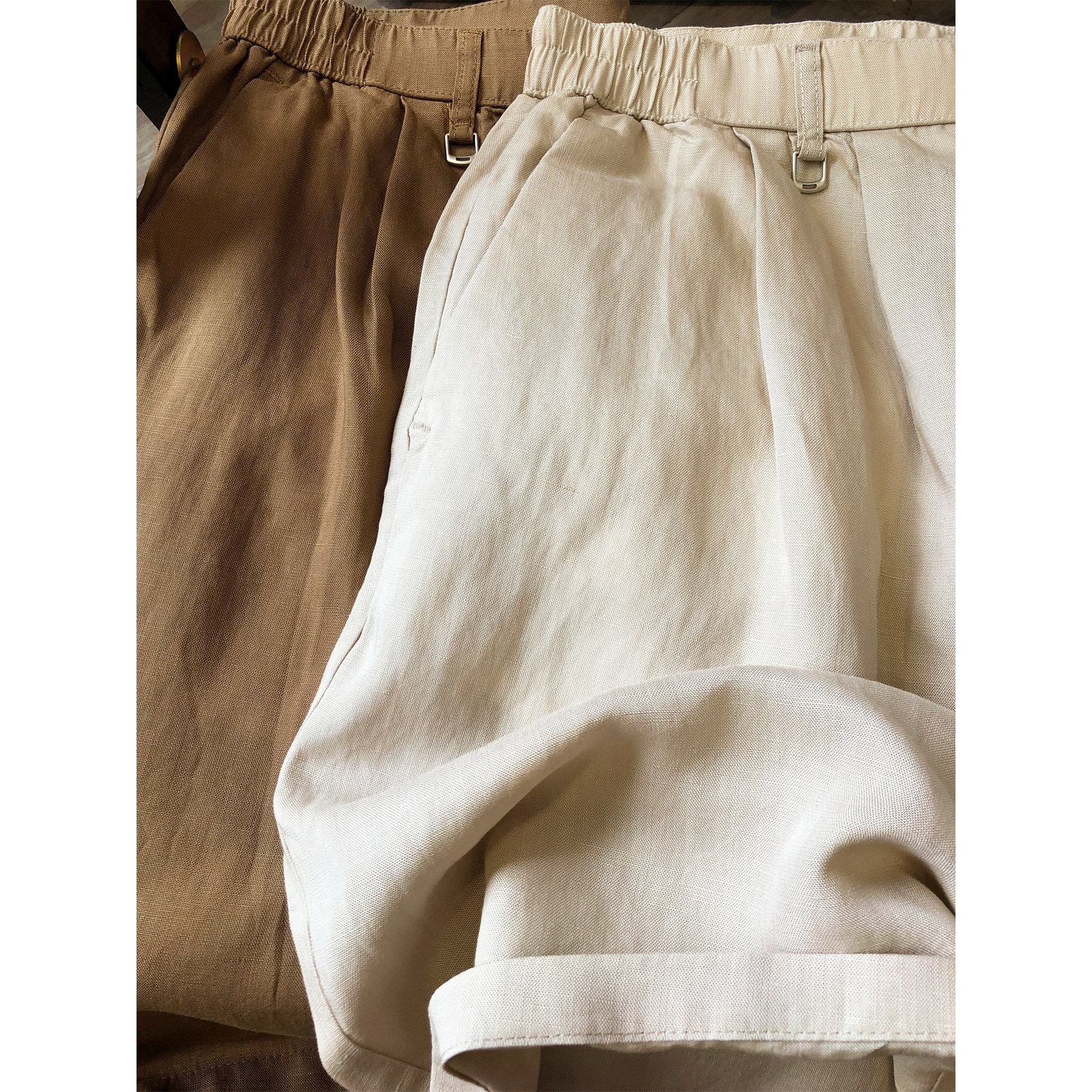 160g cool mulberry silk feel linen blend thin casual shorts men's trousers 2026 loose cropped pants men
