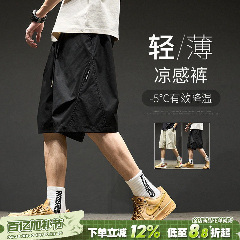 Shorts: Men's Summer American Pleated Charge, Pants, Loose and Versatile Men's Pants, Thin Breathable Mesh, Ice Silk Cropped Pants