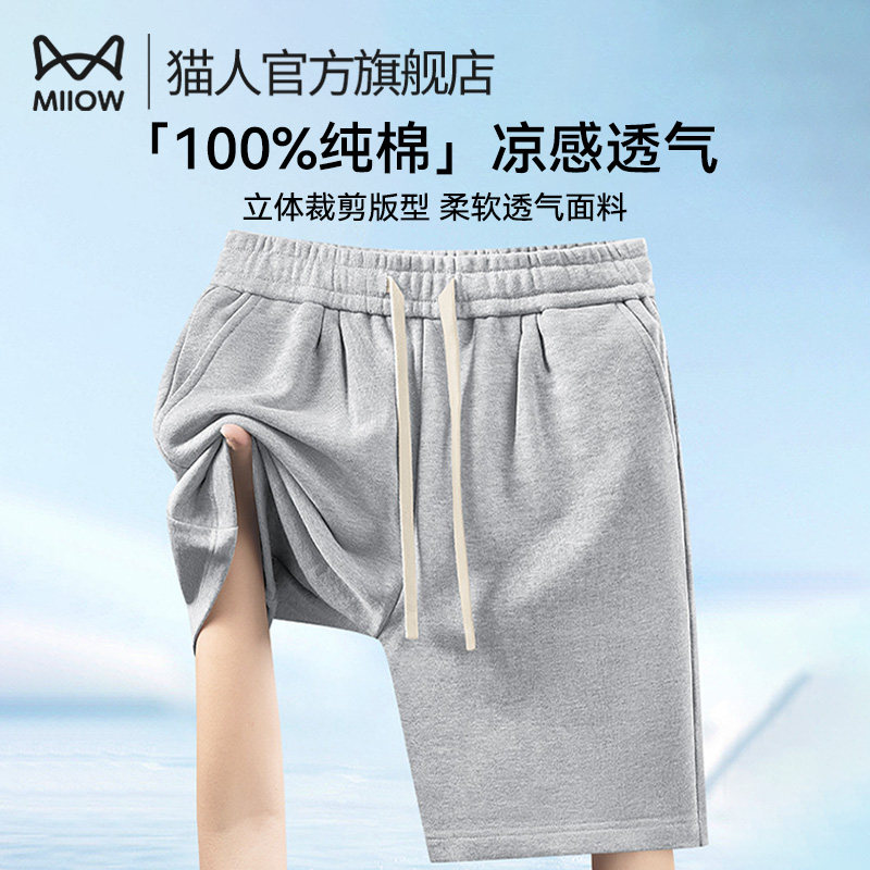 Cat Man Men's Shorts 2025 New Summer Pure Cotton Casual Loose Sports Can Be Worn Outside Cropped Pants Trendy Men's Style