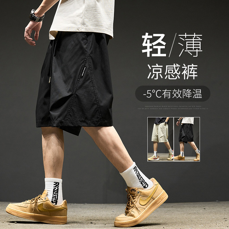 it izzue ice silk quick-drying sports shorts men's summer outdoor cropped pants trendy loose casual mid pants Y