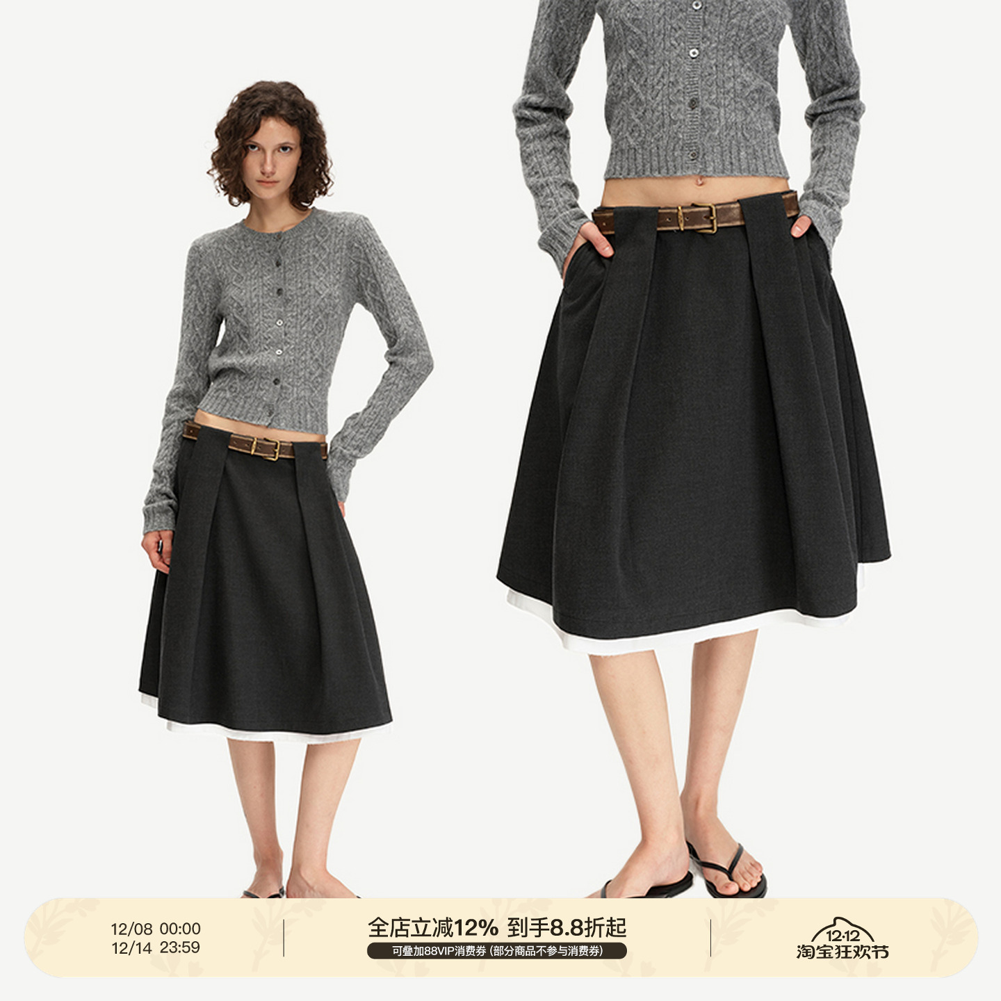 PUKI special waist design, retro high-intelligence contrasting A-pendulum versatile umbrella skirt long skirt