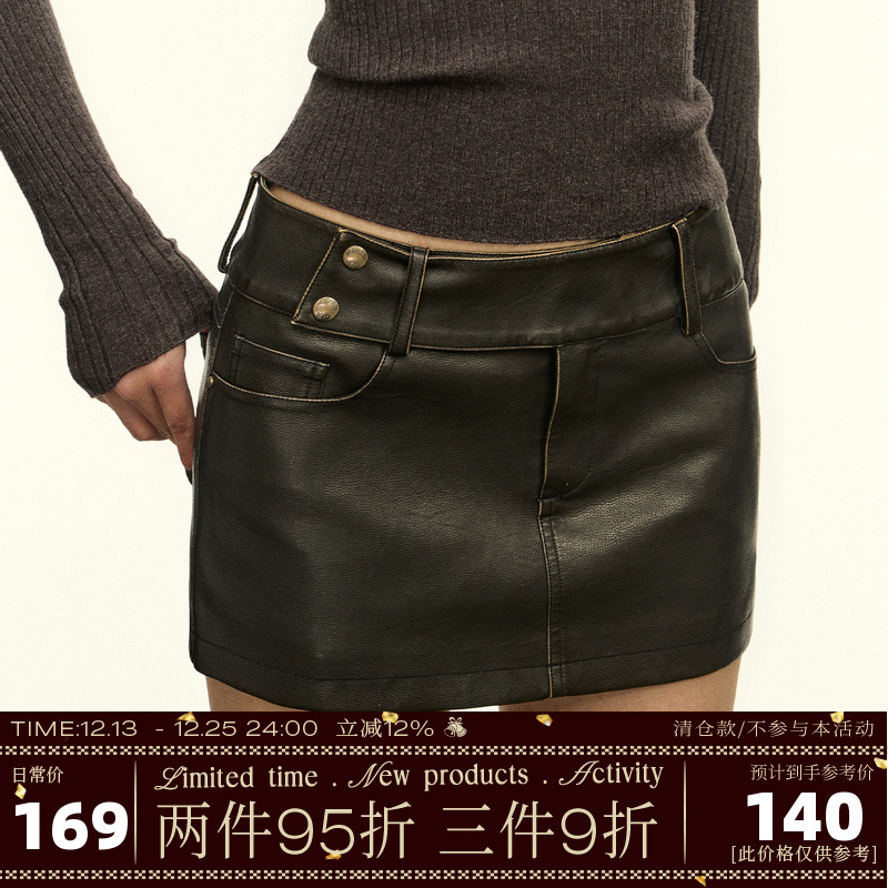 Ariseism retro design skirt women's short skirt 2025 autumn new hot girl low-waisted hip leather skirt