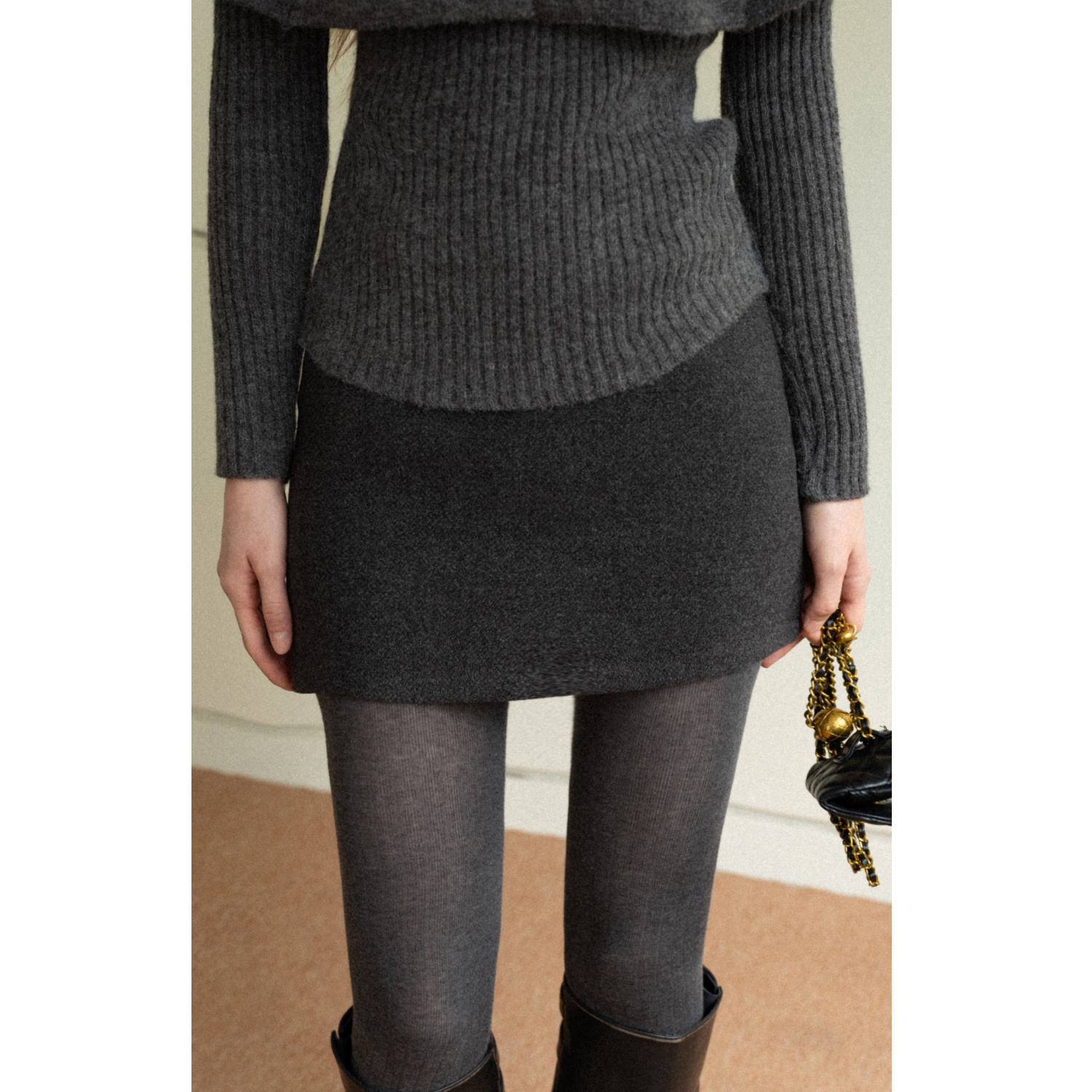Gray woolen skirt women's autumn and winter new versatile slimming A-line skirt high-waisted black woolen hip-hugging short skirt