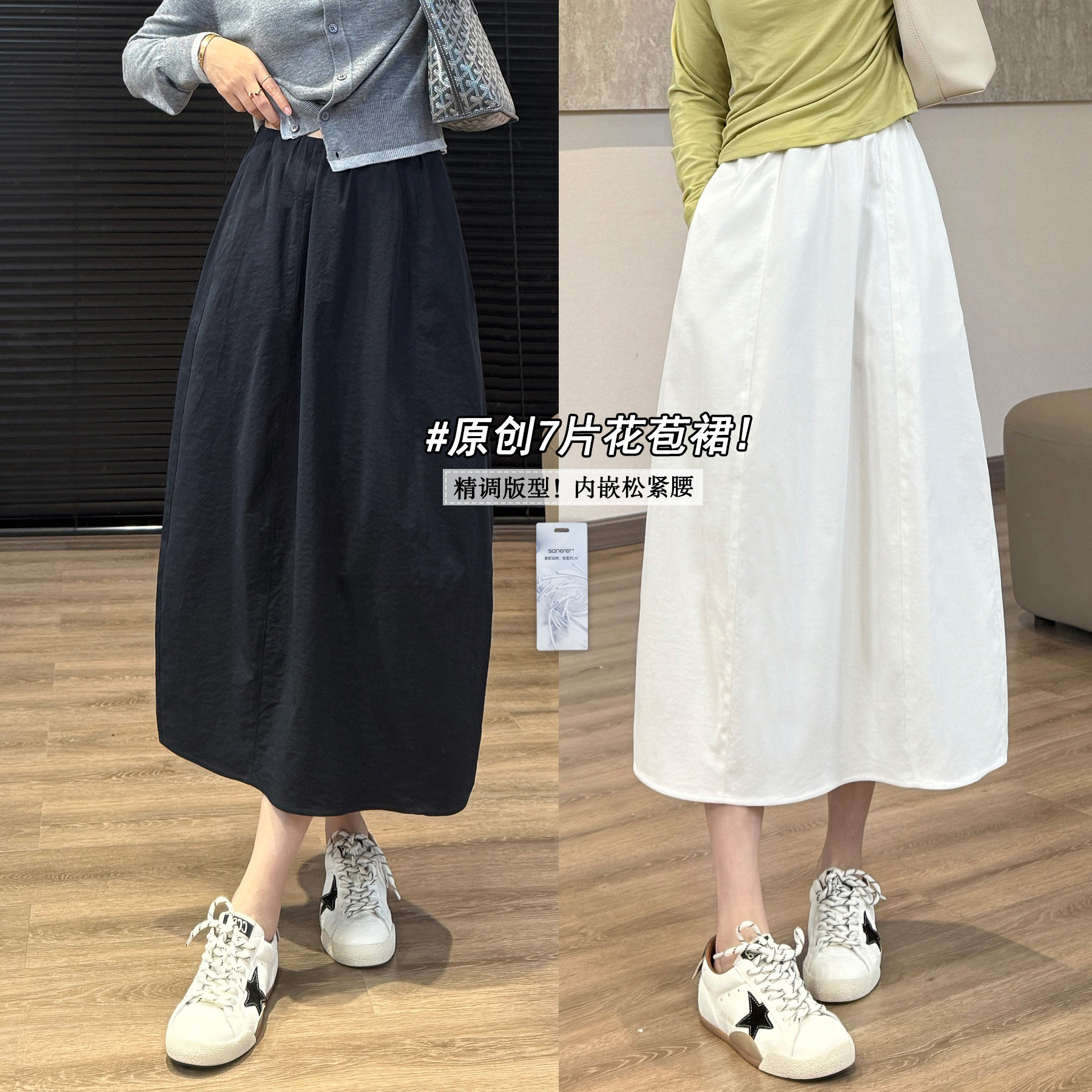 Beautiful little beautiful [original] anti-wrinkle 7-piece flower bud skirt inner bend waist finish cocoon skirt pocket casual long skirt
