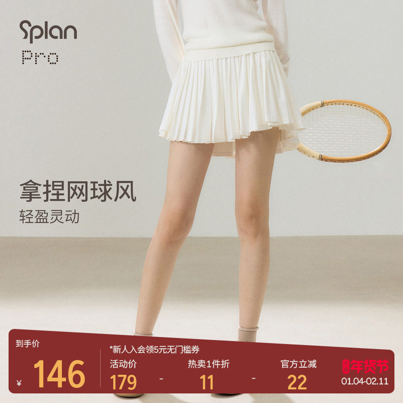 SPLAN beautiful tennis skirt autumn and winter drape A-line skirt white sports pleated skirt women's badminton suit