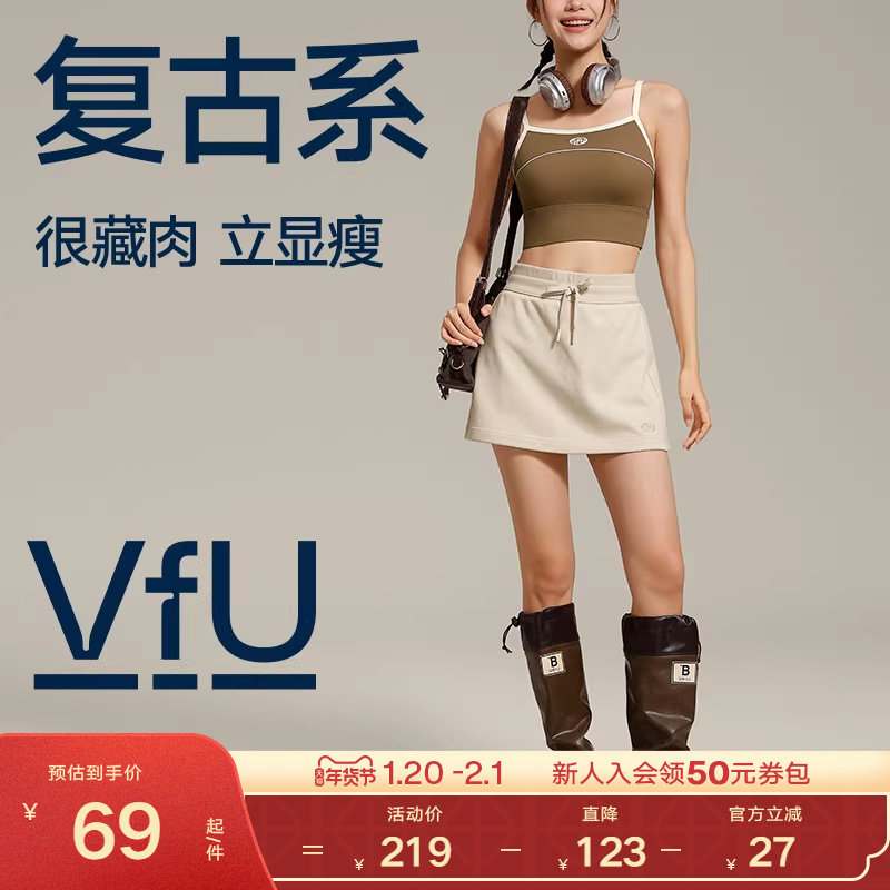 VfU sports skirt fake two-piece short skirt 2025 new spring female small A-line off-white skirt