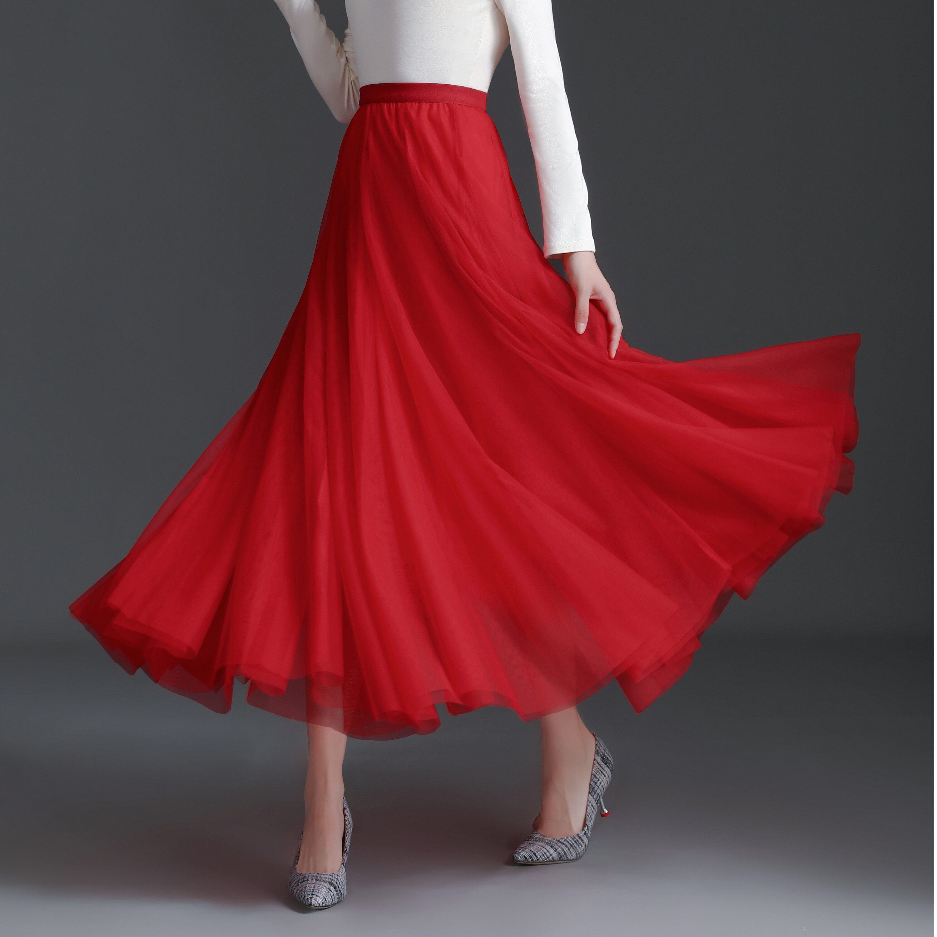 2026 spring/summer mesh skirt 12/20 piece skirt A-line version 720-degree large skirt mid-length high-waisted drape