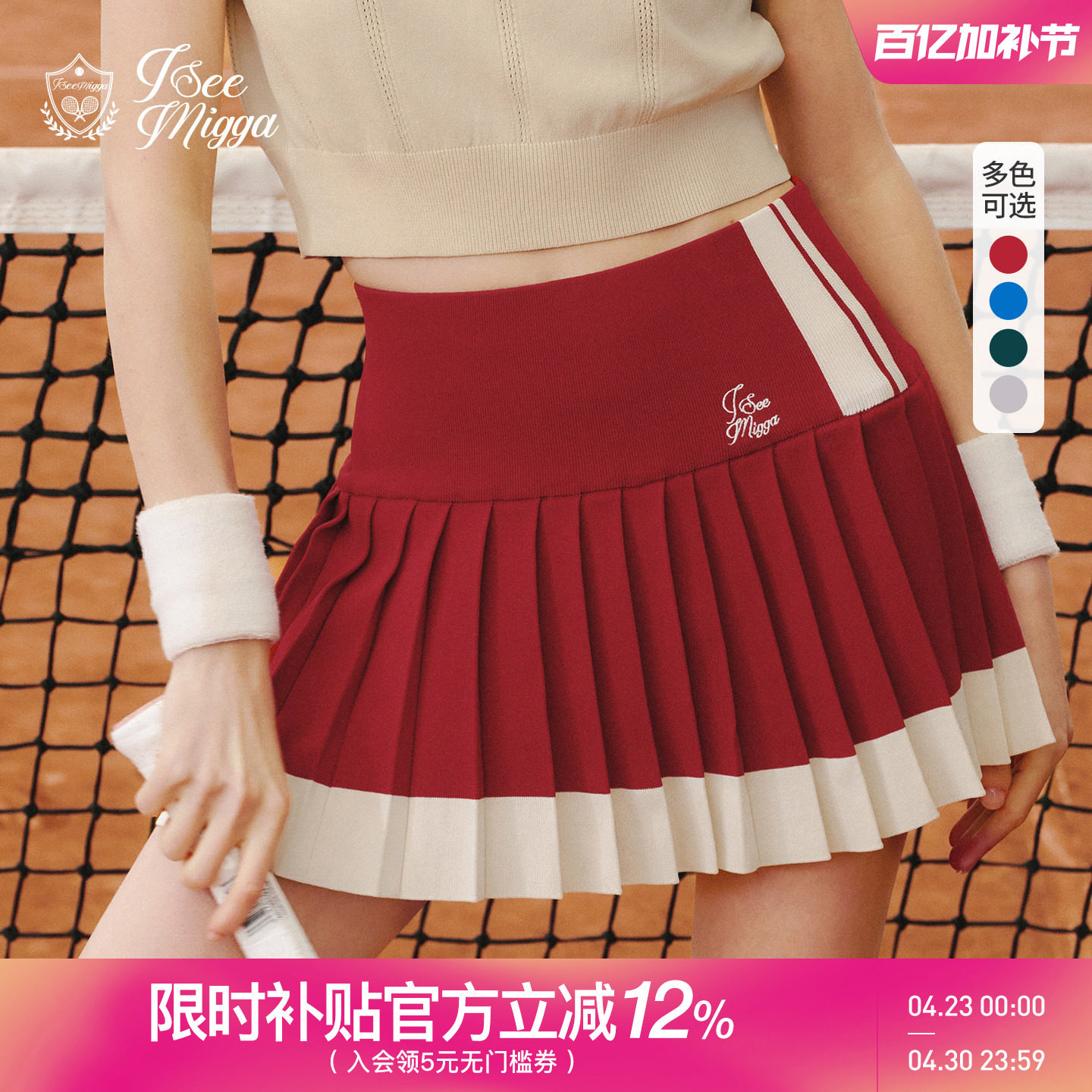 ISEEMIGGA Asian school girl tennis culottes and pants women's badminton sports skirt pleated skirt red spring and summer