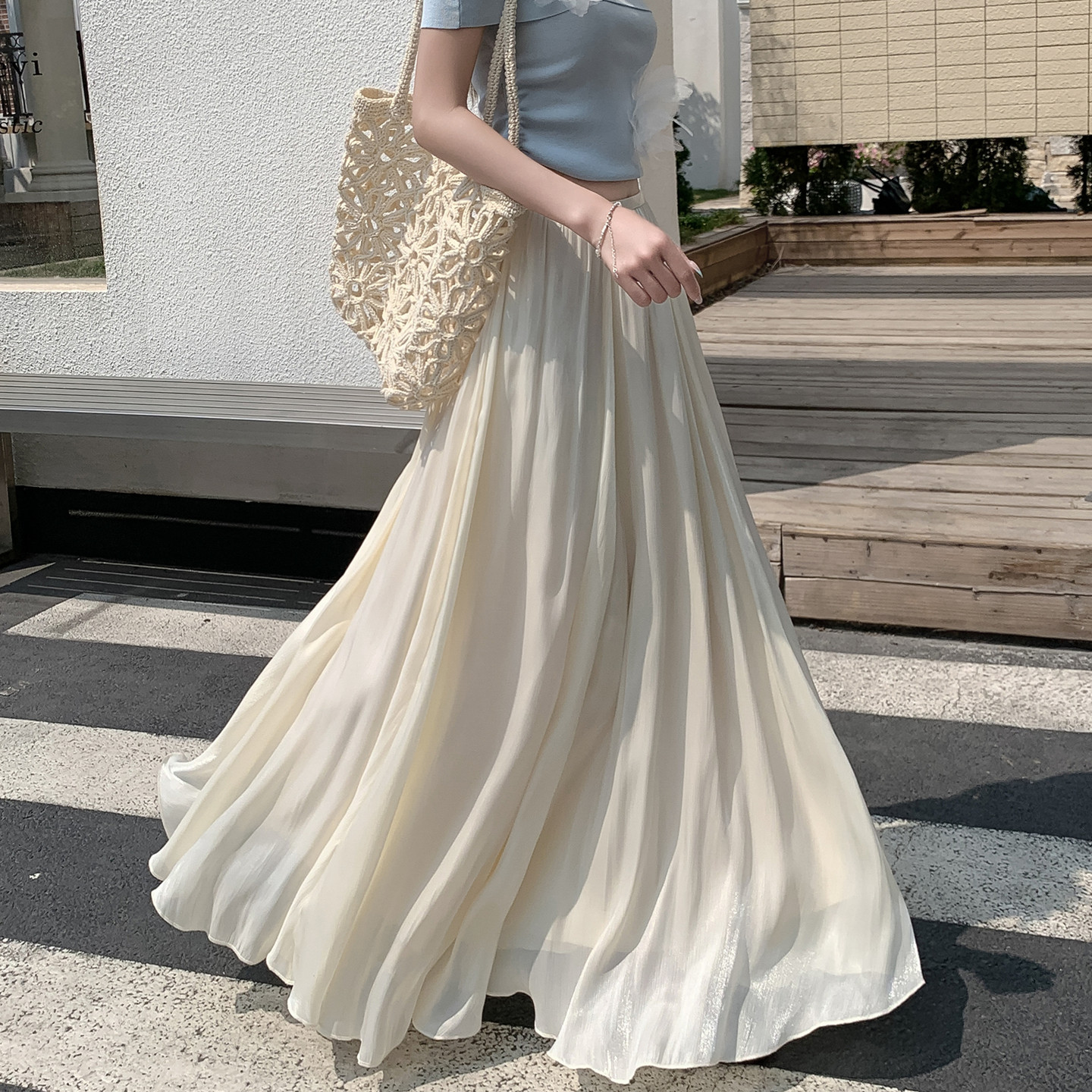 Streamer gauze skirt, skirt, light luxury high-end sense women's 2026 new high-waisted slimming A-line skirt, flowing long skirt