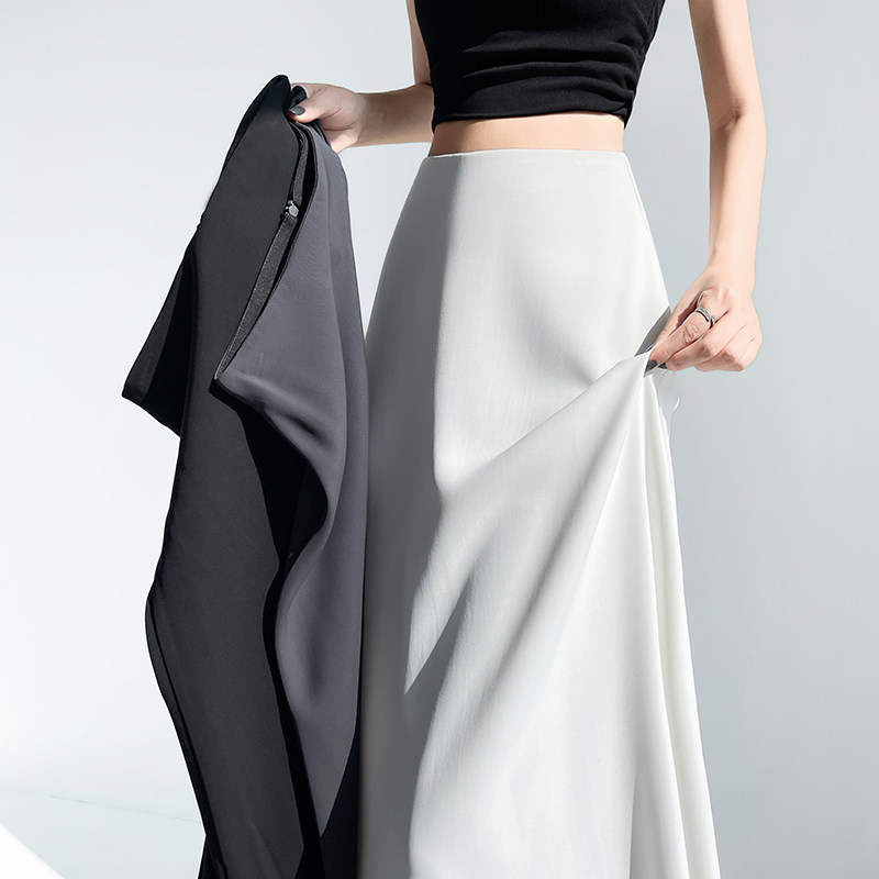pusumede black satin high-end skirt women's summer long skirt temperament slimming mermaid skirt
