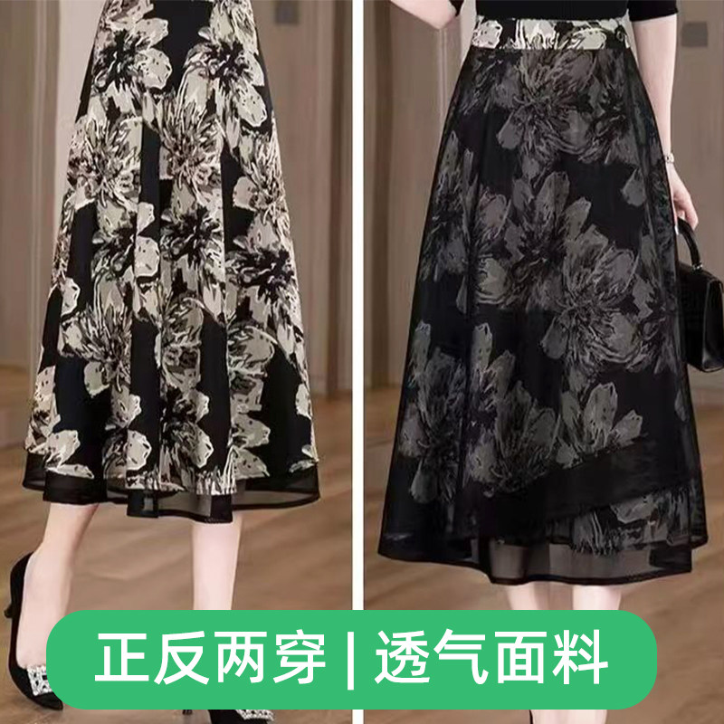 2025 Fall/Winter Mesh Skirt, Women's High Waist, Slimming Mid-Length A-Line Printed Gauze Skirt, Chiffon Breathable Skirt