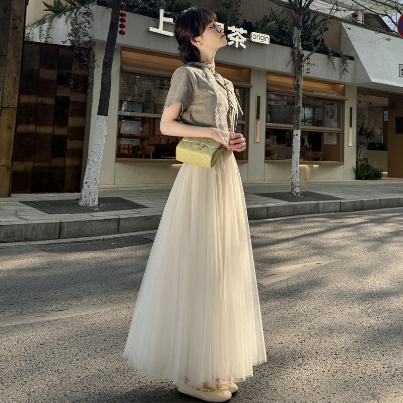 2026 Spring New Gauze Skirt, White Mesh Skirt, Women's Drape, A-Line, High-Waisted Skirt, Large Swing Puffy Skirt