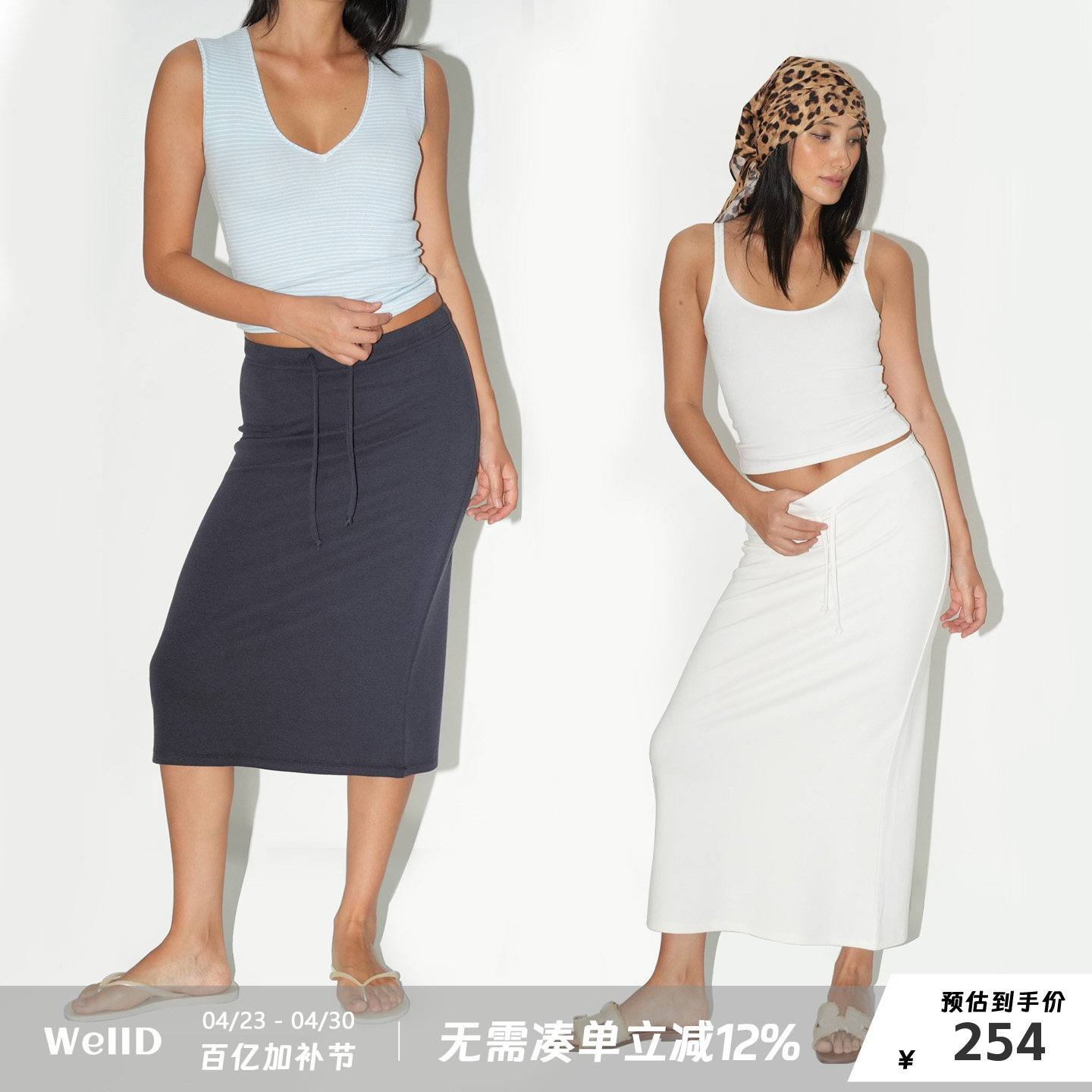 WellD Butter Series Lazy Basic Drawstring Solid Color Midi Skirt/Long Skirt (2 Lengths)