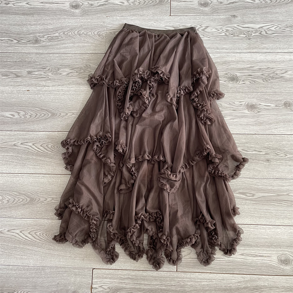 Irregular lace ~ super fairy A-line gauze skirt puffy skirt skirt women's spring mid-length cake coupon