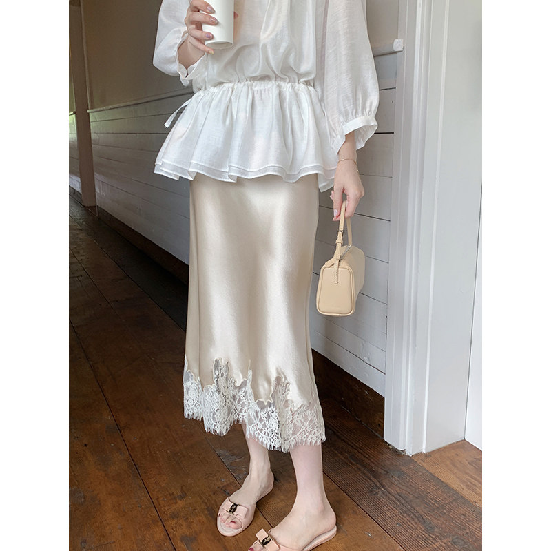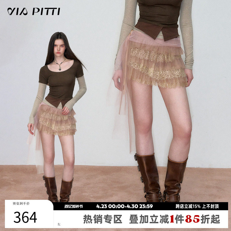 VIAPITTI design heavy lace stitching versatile streamer skirt women's spring light cake skirt