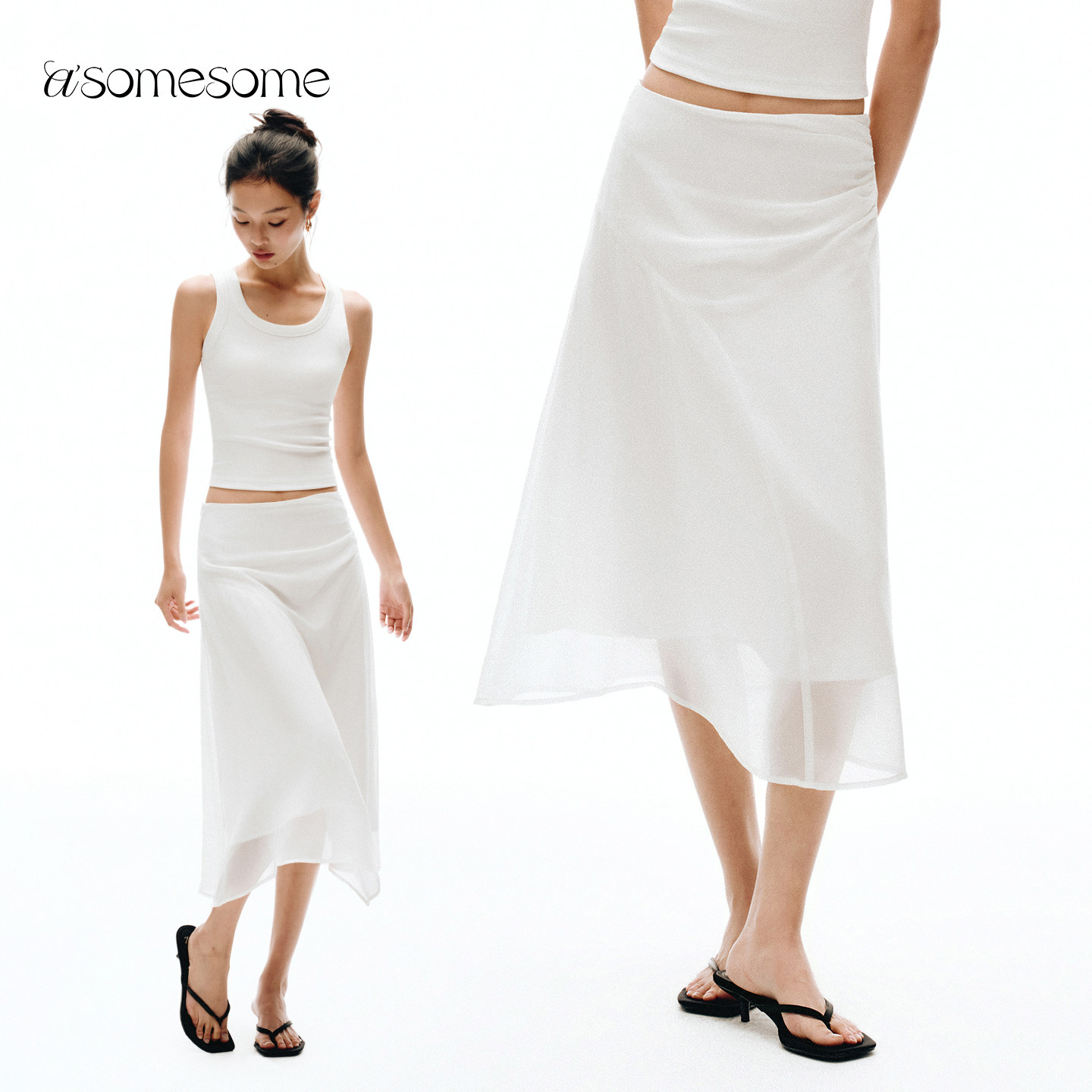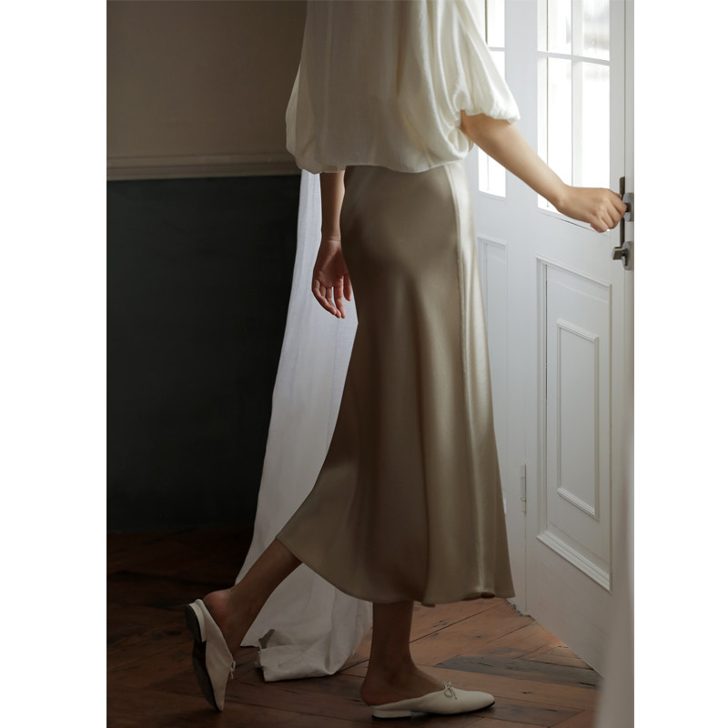 asomesome white waist pleats slim A-line skirt women's new light commuter hip skirt slimming long skirt
