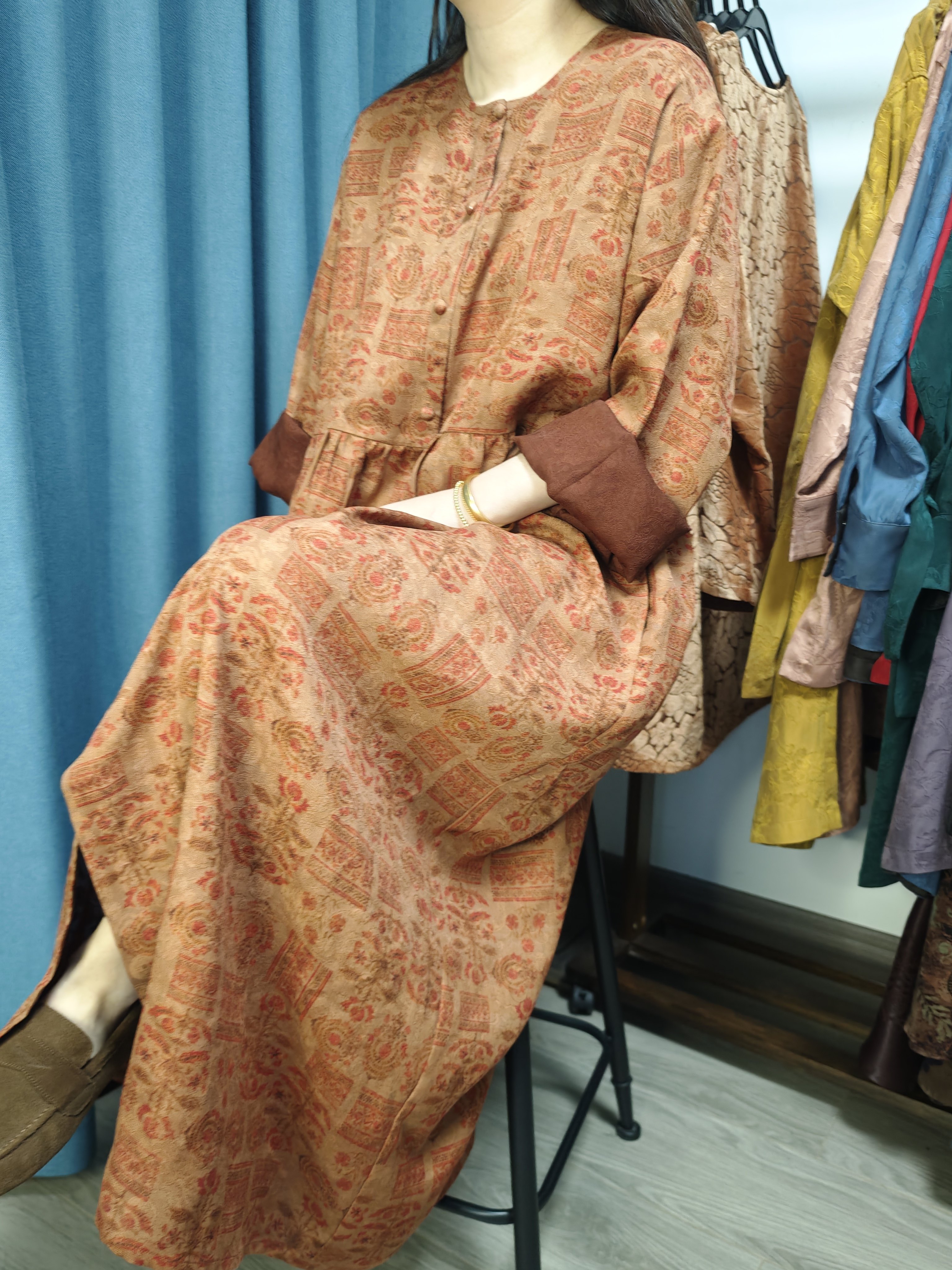 【Rhyme dyeing cloud mountain】heavy satin, new Chinese style, fragrant cloud gauze, old material woven flower dress, old money