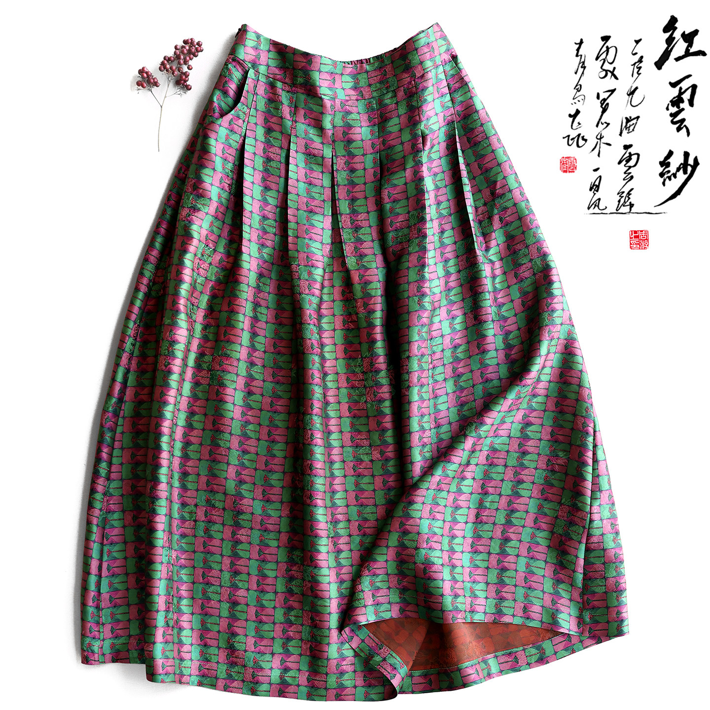 Yunshu original Hualuo red cloud gauze new Chinese style retro national style silk mulberry silk print skirt summer