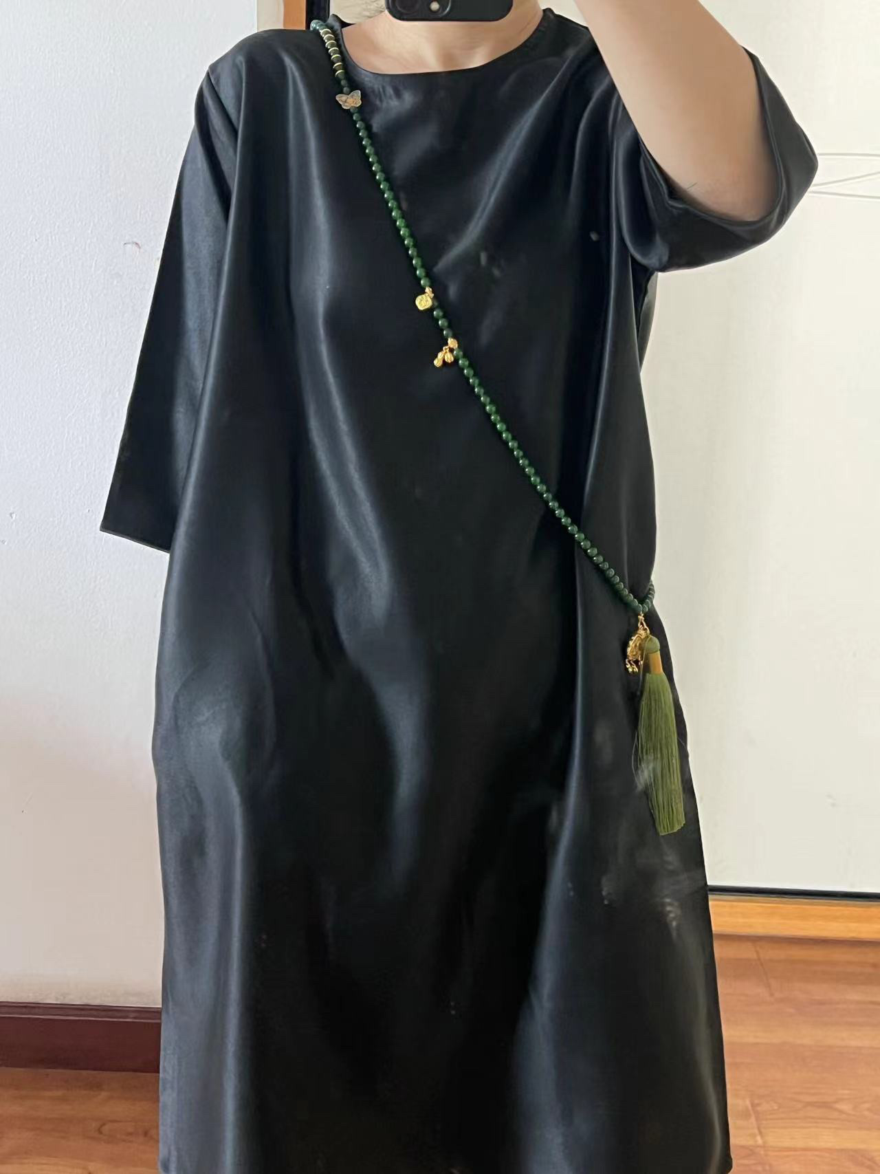 Pre-nine silkworm new mulberry silk crew neck 60 black fragrant cloud gauze leather robe simple style short-sleeved dress