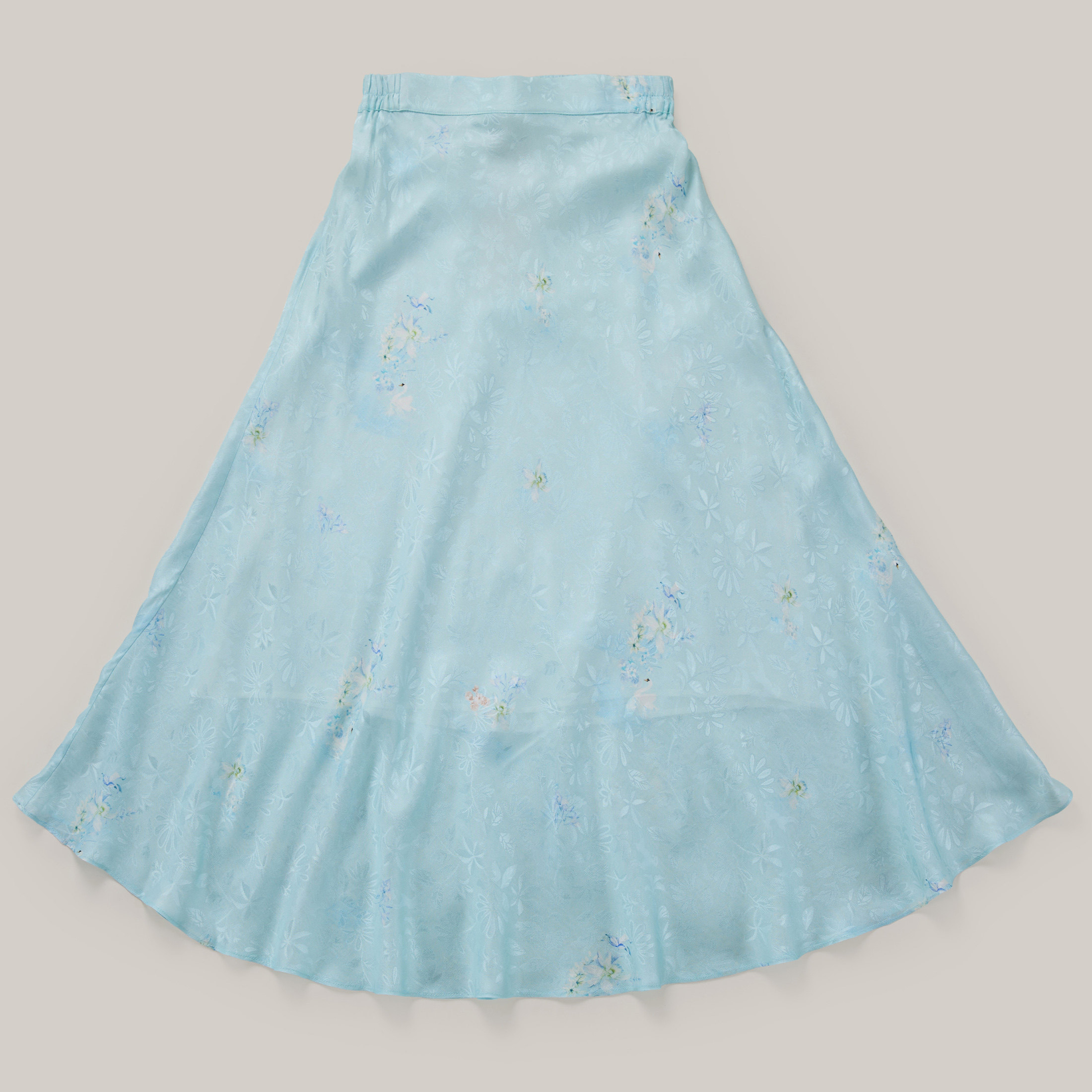 Three-warp twisted lily of the valley flower large swing skirt Suzhou handmade silk skirt women's light blue high-waisted elastic slender skirt
