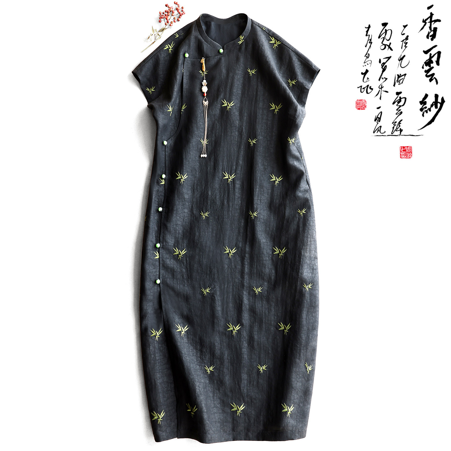 Yunshu original small floral embroidery turtle pattern fragrant cloud yarn new Chinese style Hanfu improved long dress summer
