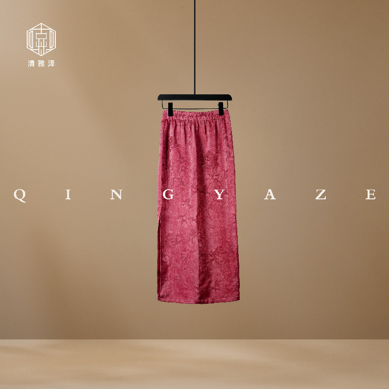 Begonia powder! Plant-dyed silk jacquard new Chinese skirt! GZ5894
