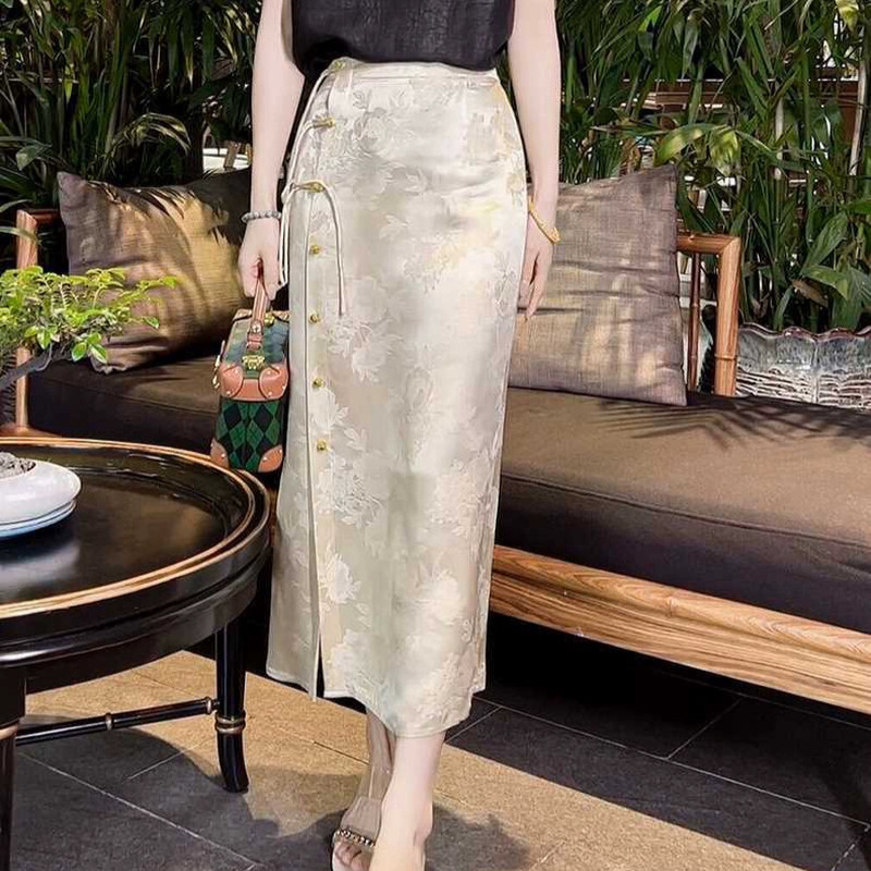 Italian haute couture new Chinese jacquard skirt women's early spring new national style high-waisted slit hip skirt female silk