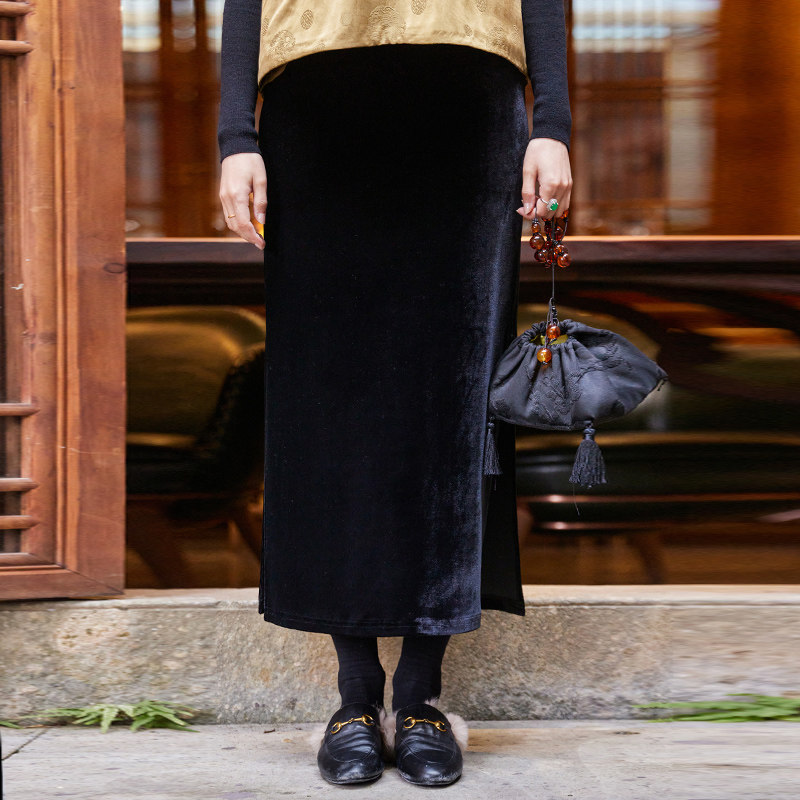 Fei Tang thickened Korean velvet skirt, 100 women's autumn and winter over-the-knee skirts, mid-length women's versatile Chinese temperament skirts