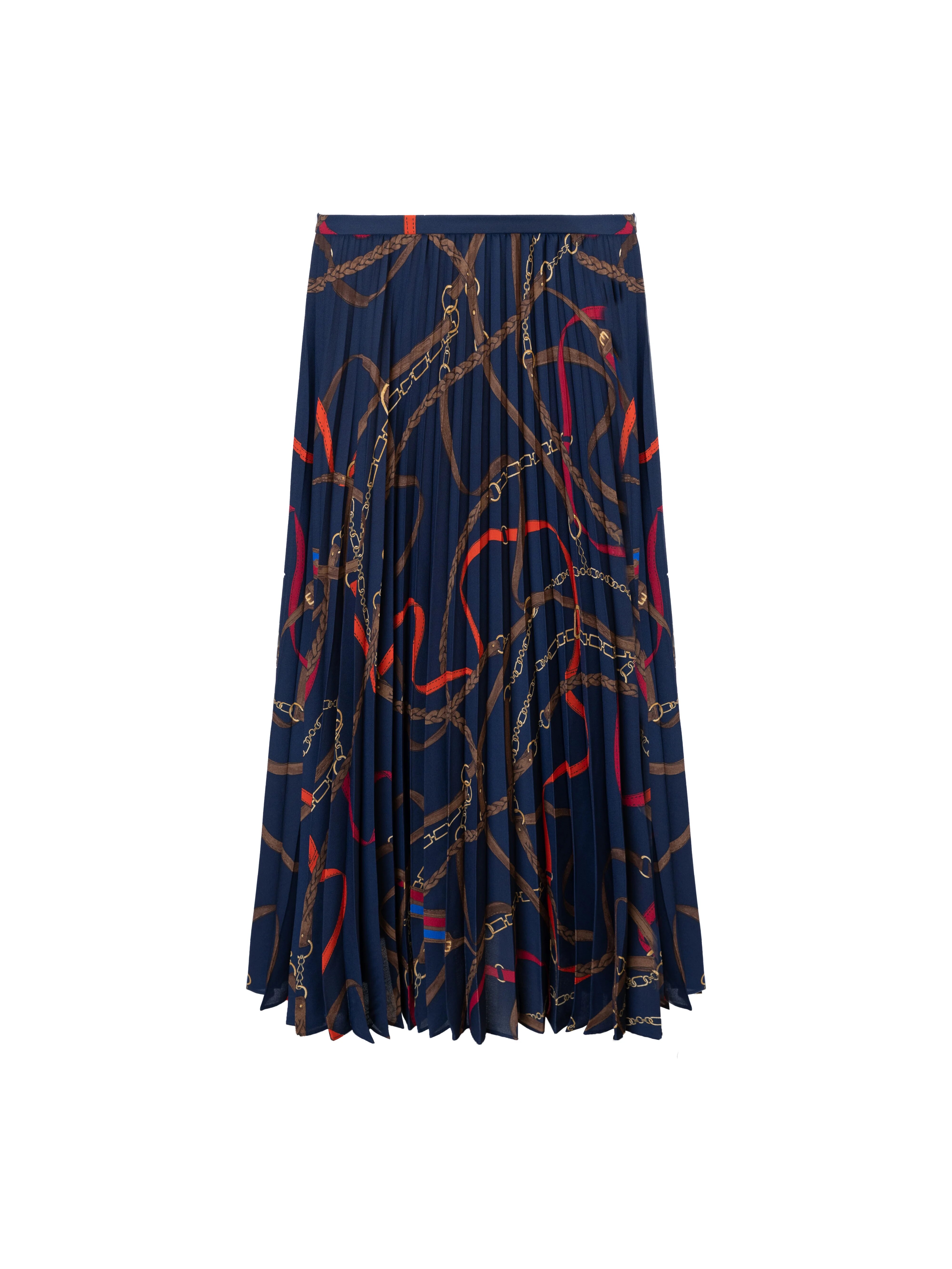 Old money style acetic acid chain pleated dark blue skirt design sense temperament high-end skirt
