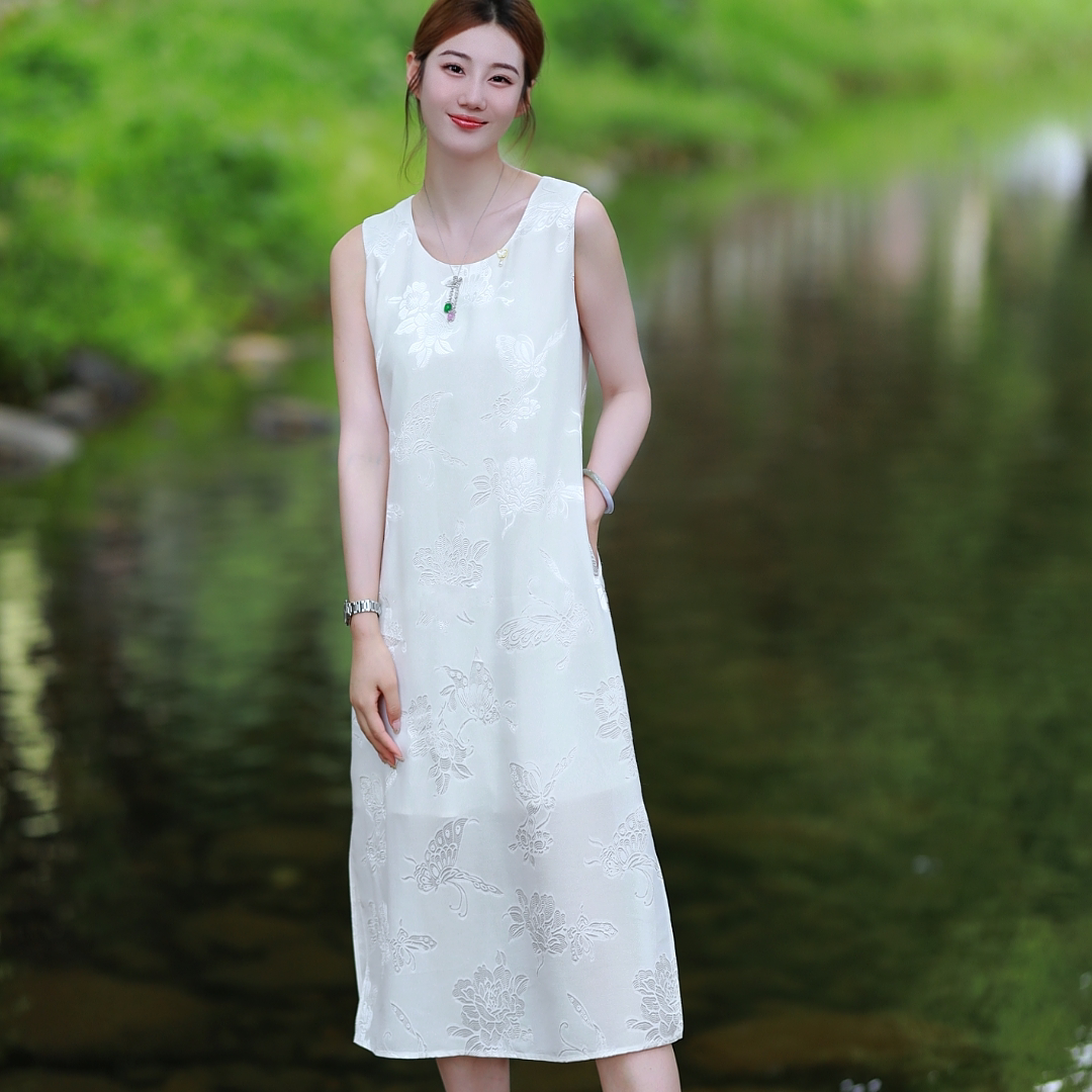 "Pepe Customization", "Butterfly Love Flower" New Chinese Summer Fashion Versatile Slimming Vest Dress 5220