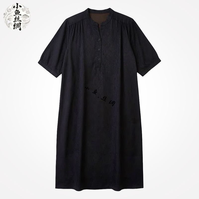 6420-Xiangyun yarn 48m American style black dress women's stand-up collar short sleeve mid-length Xiangyun yarn high-end sense