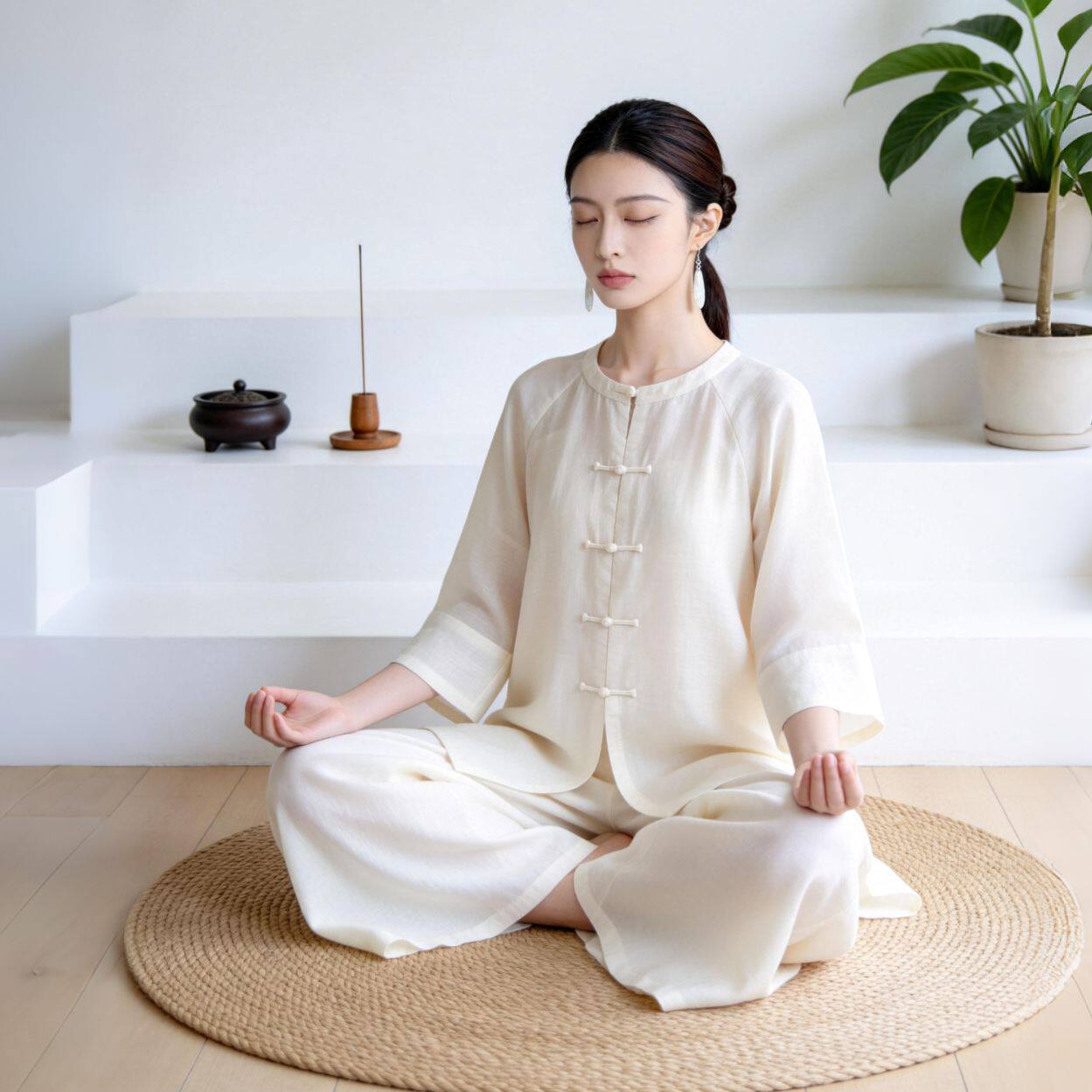 Zen Buddhist women's clothing, Chinese style fairy qi healer, Zen costume, young people meditation layman, Tai Chi practice clothes set