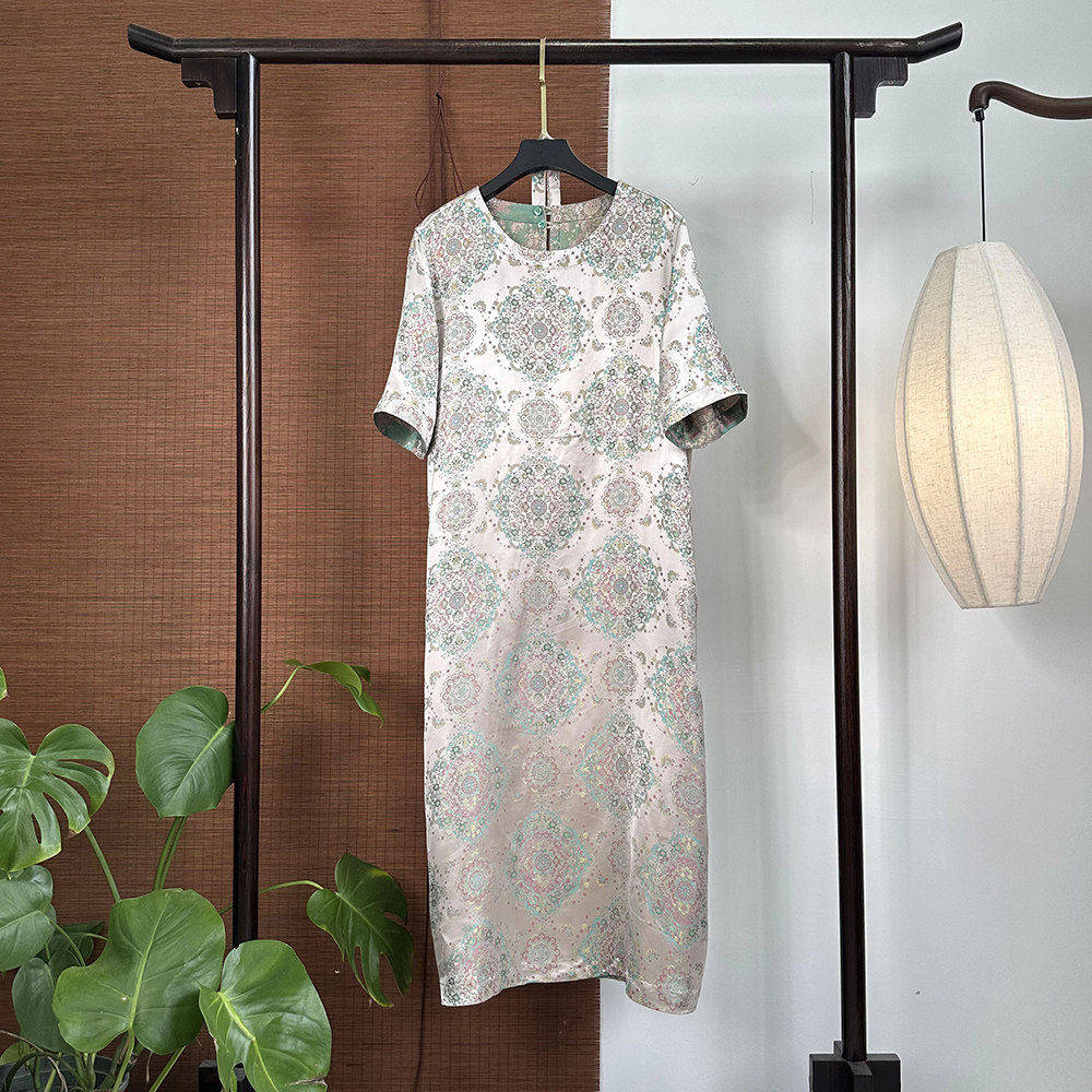 【7938】 Blue and white porcelain new Chinese style jacquard flower dress