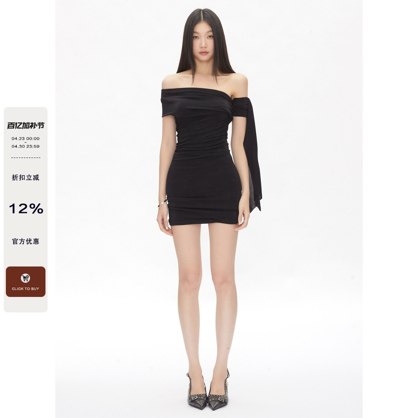WITHMIN one-shoulder slanted shoulder dress summer women's high-end black vest sleeveless hip skirt short skirt