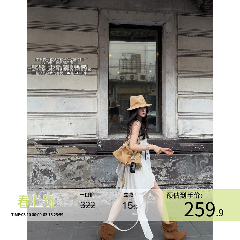 Just Ouyang Tailand travel si suit'nic two-wearing style! Distressed print irregular streamer bandeau dress