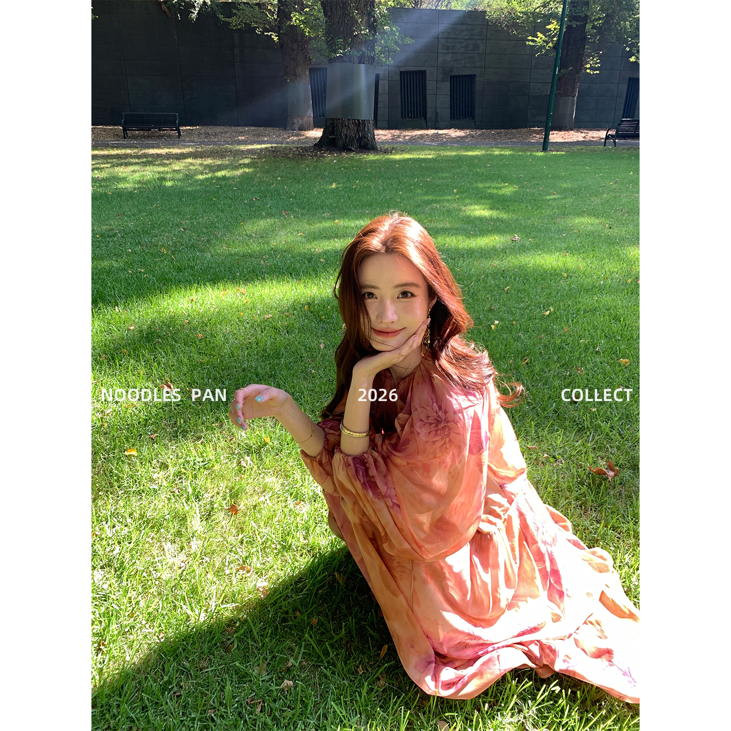 TOROON Ce Show Lantern Sleeve V-Neck Waist Floral Dress Women's Spring 2026 New Long Skirt/Short Skirt
