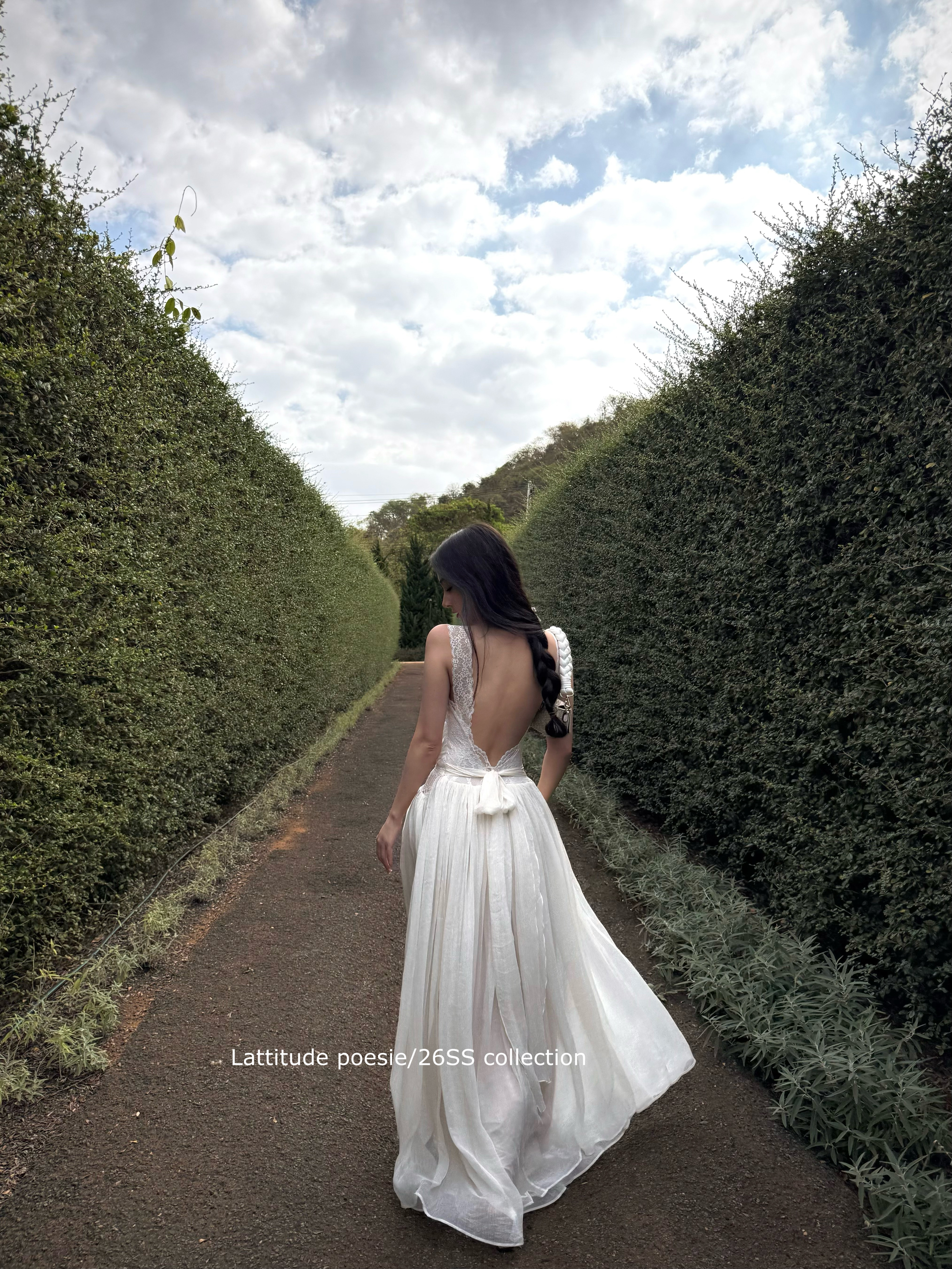 【New】Cello Sonata 26 Spring French Open Back Tulle Positioned Pleated Halterneck Strap Dress