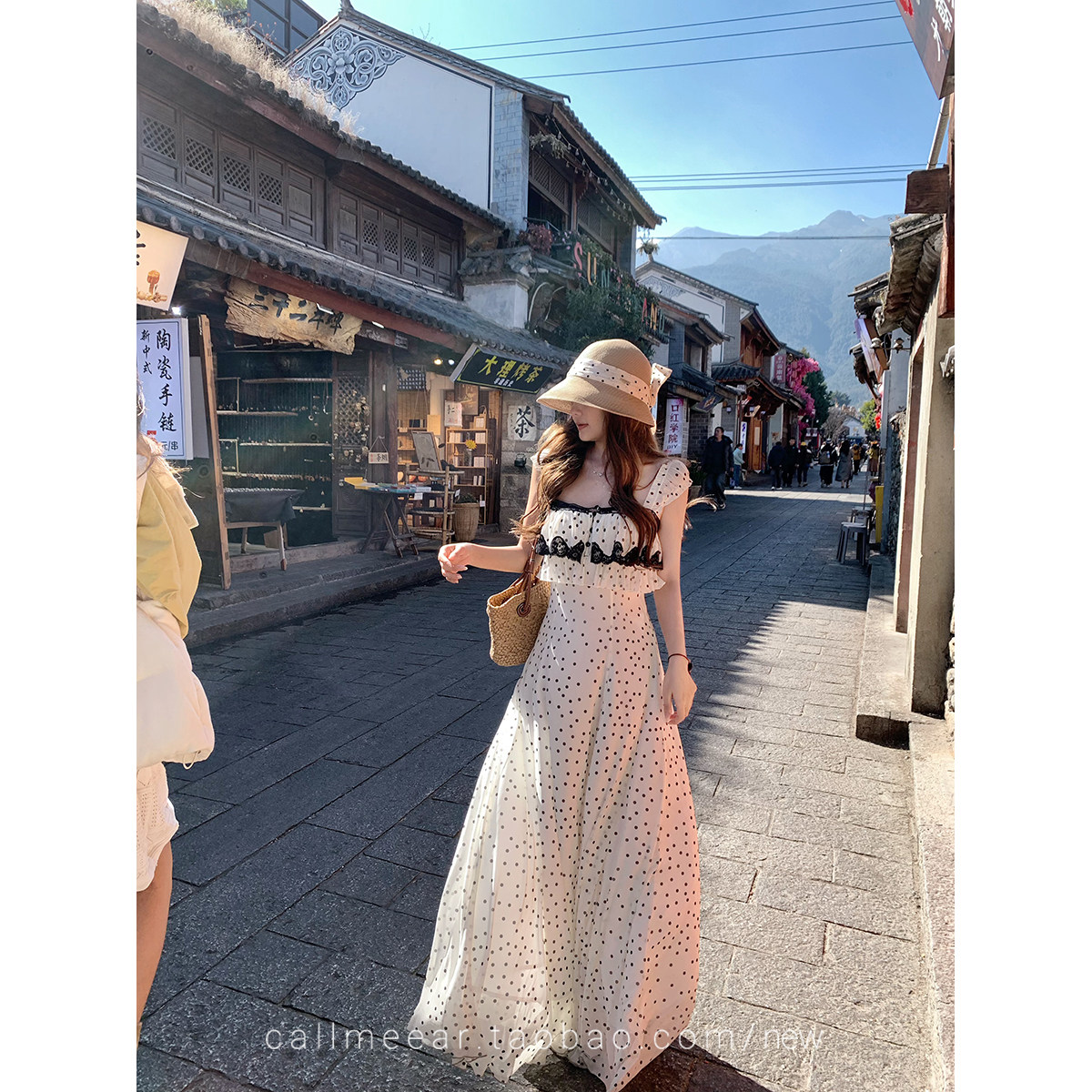 Barb Chill "Mist Veil Milk Apricot" Seaside Resort Dress, Cake Skirt, Women's Summer Princess Dress, Birthday Dress